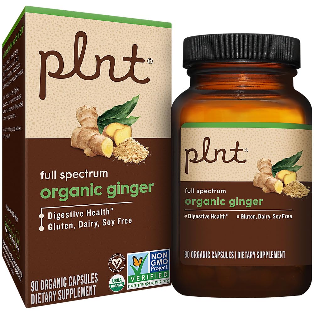 plnt Organic Ginger for Digestive Health Support - 500 MG (90 Capsules)