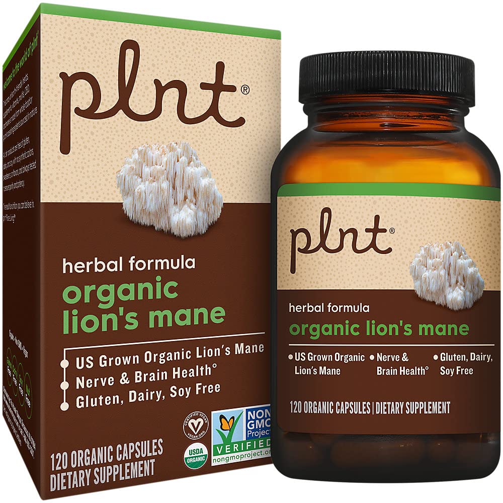plnt Organic LionaTMs Mane Mushroom a Supports Nerve & Brain Health a 1 000 MG (120 Organic Capsules) 120 Count (Pack of 1)