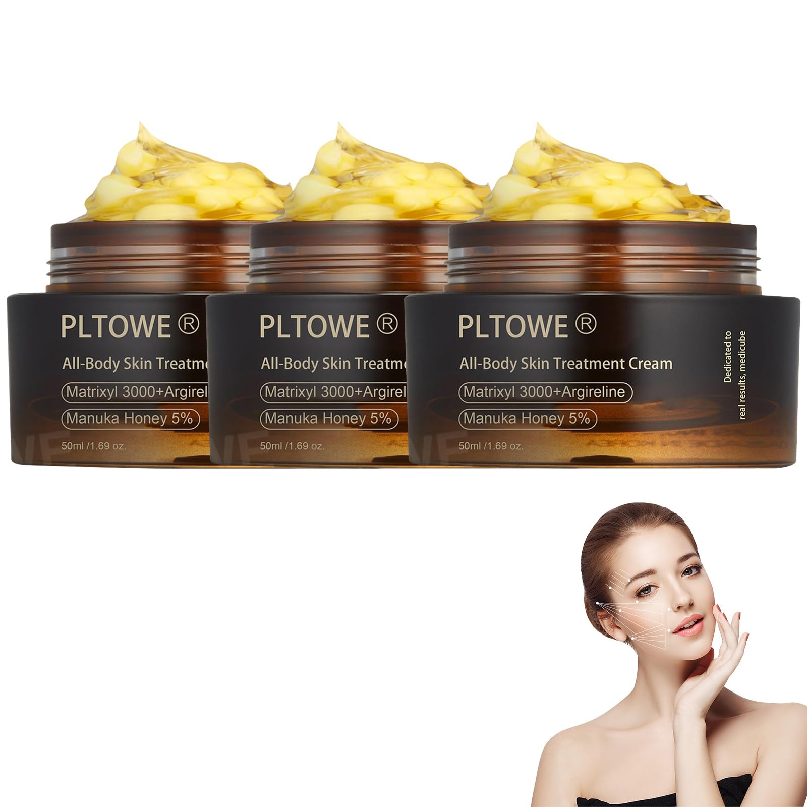 PLTOWE Powerful All-Body Skin Treatment Cream, Professional Bee Venom Skin Treatment Cream, Natural Powerful All Body Skin Treatment Cream Suitable for All Skin Types (3 Pack)