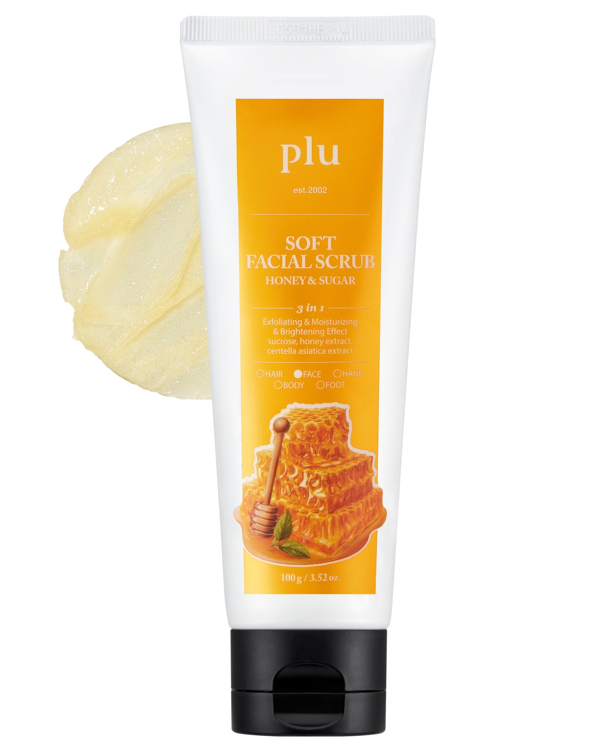 Plu Soft Facial Scrub Honey Sugar is a gentle yet effective skincare solution specifically designed for those seeking radiant and smooth skin without harshness. This unique facial scrub combines fine sugar granules, shea butter, and honey extract to provide gentle exfoliation that removes dead skin cells while promoting a smoother, more refined skin texture. The hypoallergenic formula is enriched with natural ingredients such as bergamot leaf and rose flower extracts, which deeply nourish and revitalize the skin, leaving it soft and supple after each use. The inclusion of 100 fine sugar ensures the scrub is mild yet effective in maintaining the skin's natural moisture balance, preventing any greasy feel. Additionally, the refreshing and uplifting scent of grapefruit blended with sweet honey enhances the overall sensory experience, making each skincare routine a rejuvenating moment of self-care. This scrub is simple to use: just apply a sufficient amount to a wet face, gently massage in circular motions, and rinse thoroughly. Regular use of Plu Soft Facial Scrub will lead to visibly brighter and healthier-looking skin, improving texture and radiance for a glowing complexion. Perfect for all skin types, including sensitive skin, it provides a perfect balance of exfoliation and moisture to maintain optimal skin health.EASY TO USE: To achieve the best results, apply a sufficient amount of scrub to a wet face, massage gently in circular motions along the skin texture, and rinse off thoroughly. Regular use leads to visibly brighter and smoother skin, enhancing your complexion's overall health and appearance. REFRESHING AROMA: Enjoy the unique and uplifting scent of grapefruit mixed with sweet honey in our scrub. This soft citrus fragrance invigorates the senses, turning your skincare routine into a rejuvenating experience. SMOOTH RADIANT SKIN: With 100 fine sugar granules, our scrub gently removes dead skin cells, promoting a smoother, more refined skin texture. Its mild formula helps maintain skin's natural moisture balance, ensuring a silky, non-greasy feel. RICH NATURAL INGREDIENTS: Infused with a blend of shea butter, honey extract, bergamot, and rose flower extracts, our scrub not only exfoliates but also deeply moisturizes and revitalizes your skin. Each application leaves your skin feeling soft, supple, and thoroughly nourished. GENTLE EXFOLIATION: This Plu Soft Facial Scrub combines fine sugar, shea butter, and honey for gentle yet effective exfoliation. It enhances skin glow without causing irritation, making it perfect for sensitive skin. Enjoy a smoother and more radiant complexion with each use.