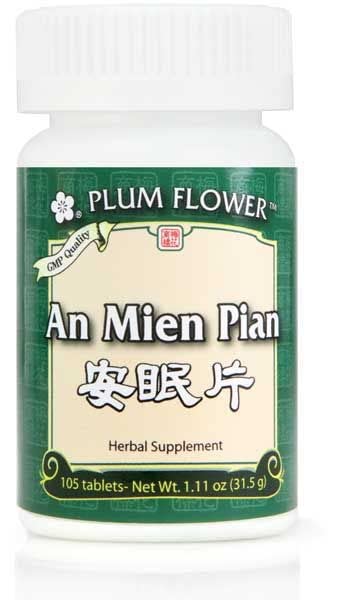 No pharmaceuticals, dyes, or sugars and unsulfured, preservative-free herbs. This herbal mixture is designed to address stress and sleep. Plum Flower An Mien Pian comes in a bottle containig 105 tablets.
