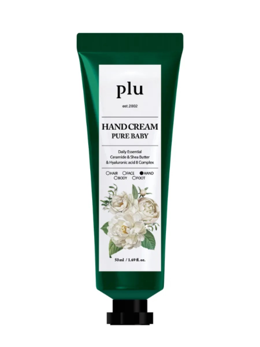 A gentle hand cream with a light baby scent, PLU Hand Cream Pure Baby 50ml, Korea.