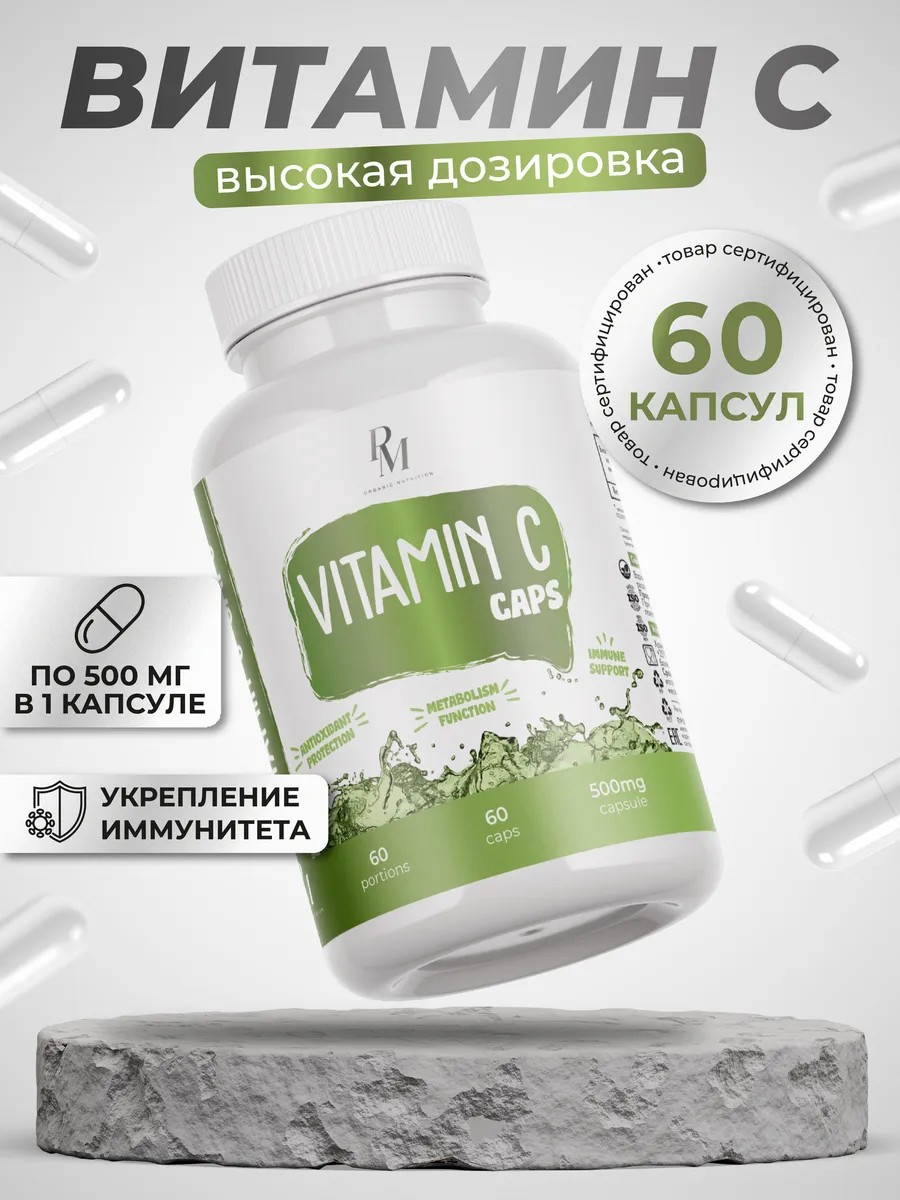 PM Organic Nutrition Витамин С Vitamin C 500мг для иммунитета 60 капсул