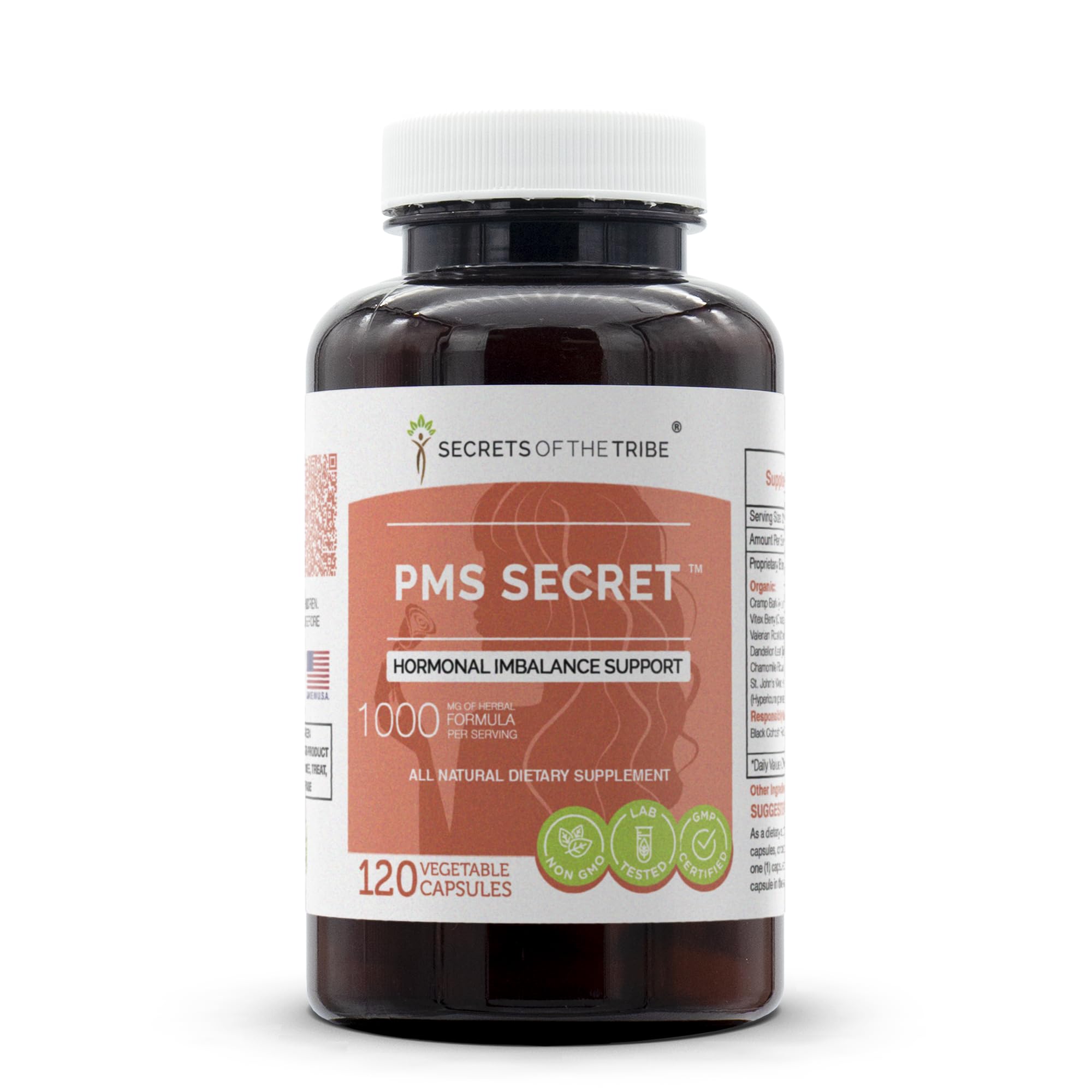 PMS Secret 120 Capsules, 1000 mg, Black Cohosh, Cramp, Vitex, Valerian, Dandelion, Chamomile, St. John's Wort. Hormonal Imbalance Support (120 Capsules) 120 Count (Pack of 1)