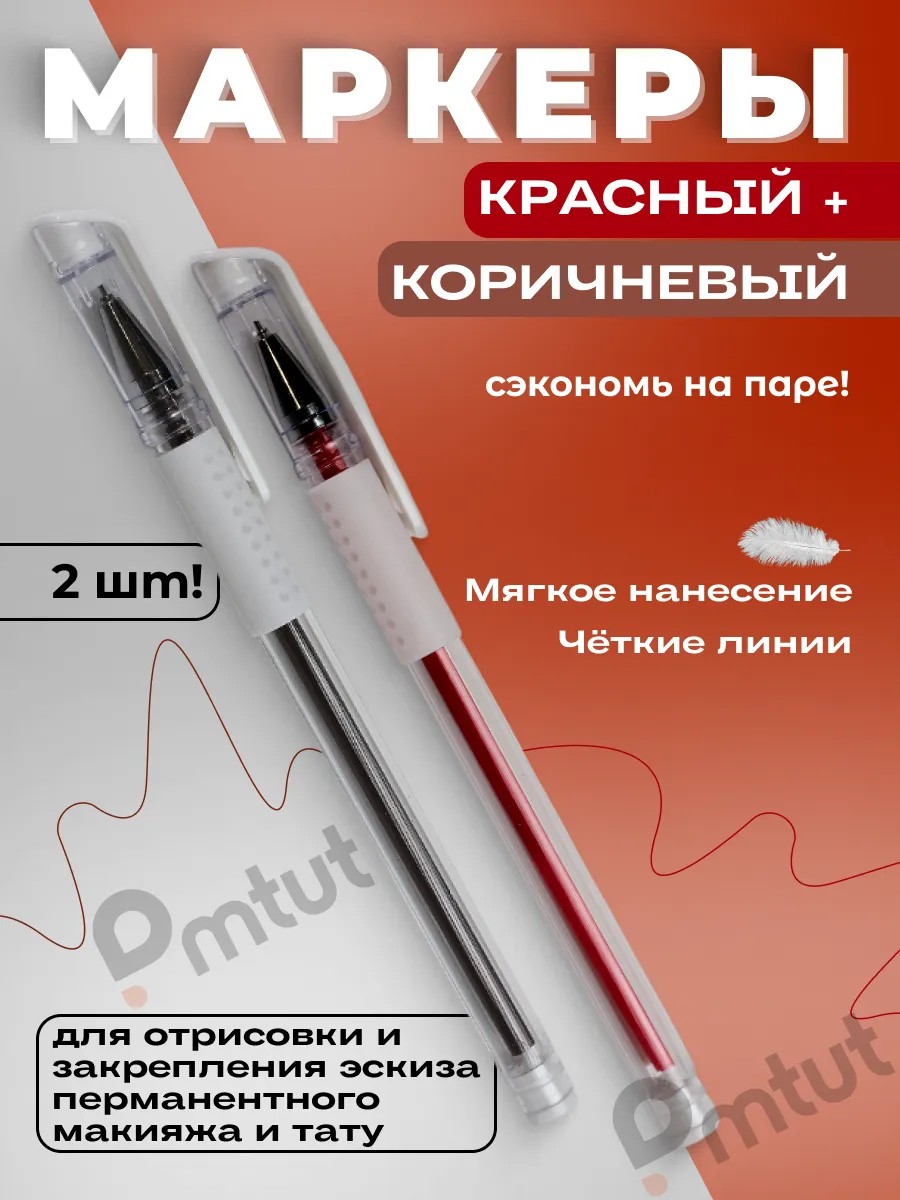 Идеальные контурные гель ручки для выполнения эскиза губ красного цвета и бровей коричневого цвета, позволяют выполнять работу в перманентном макияже качественнее. Гелевые маркеры используется для создания четкого контура тату эскиза. Контурная ручка отлично демонстрирует клиенту конечный результат тату эскиза или формы губ, бровей.