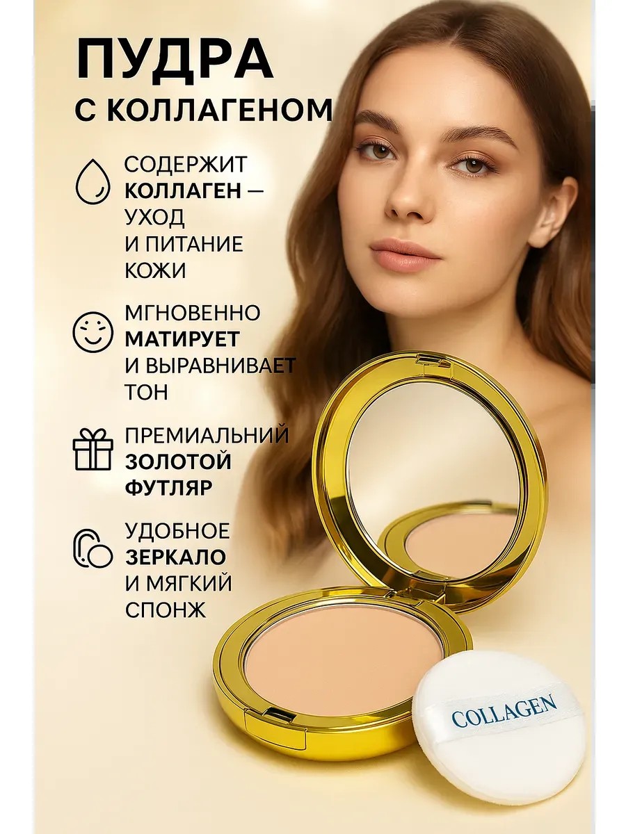 Пудра создана для тех, кто ценит качество, практичность и безупречный внешний вид. Лёгкая шелковистая формула равномерно распределяется по коже, мягко матирует и фиксирует макияж на весь день. Благодаря содержанию коллагена средство не только корректирует тон, но и заботится о коже: поддерживает её эластичность, увлажняет и предотвращает появление сухости.
