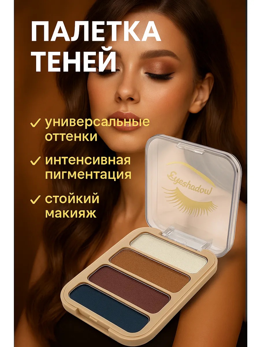 | Комплектация | Тени для век палетка 4 оттенка для макияжа глаз |