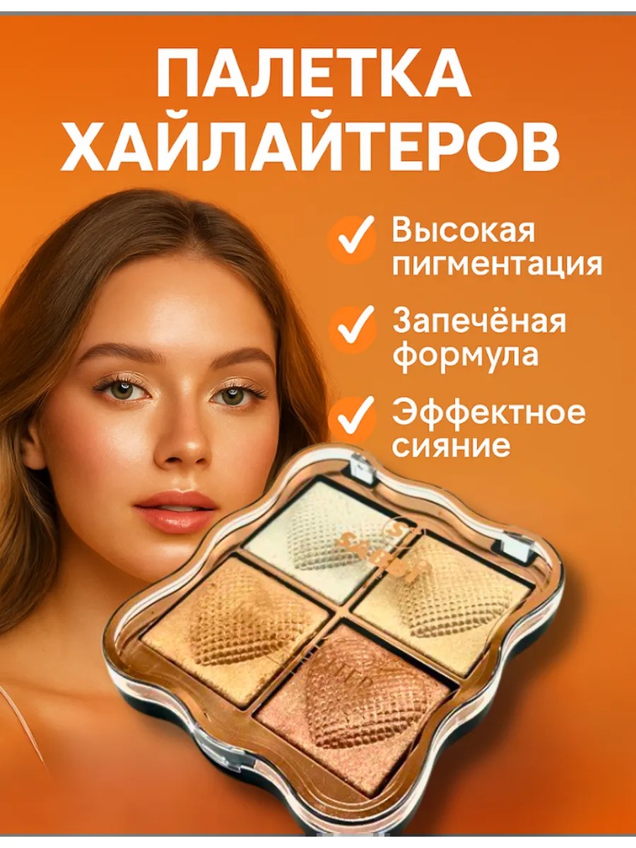 | Комплектация | Универсальный хайлайтер 4 цвета для макияжа лица |