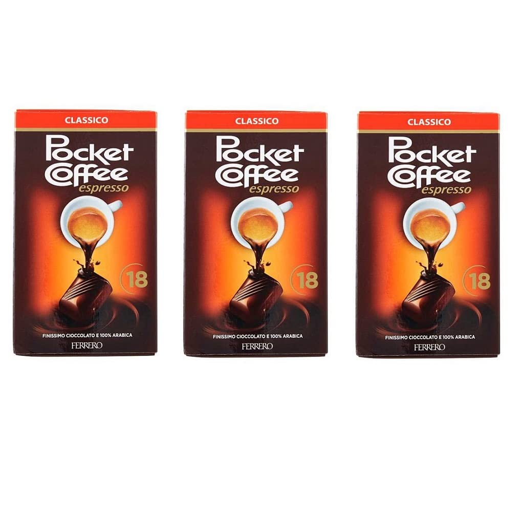 A high-quality chocolate shell contains a unique blend of 100 Arabica coffee, carefully selected from the world's finest varieties from Brazil, Costa Rica, Santo Domingo, and Colombia. Ingredients: Sweetened liquid coffee 54 (sugar, liquid coffee 34 ). Extra chocolate 23 (cocoa mass, sugar, cocoa butter, coffee extract, emulsifiers: lecithin - soy vanillin). Fine milk chocolate 14.5 (sugar, cocoa mass, whole milk, cocoa butter, coffee extract, emulsifiers: lecithin - soy vanillin). Coffee extract, cocoa butter, cocoa mass, vanillin, sugars, emulsifiers: lecithin - soy. Nutritional values per 100g: Energy 1830 kJ - 437 kcal - Fat 20.5g, of which saturates 13.3g - Carbohydrate 57.8g, of which sugars 56.6g - Protein 3.5g - Salt 0.046g. INGREDIENTS Sweetened liquid coffee 54 (sugar, liquid coffee 34 ). Extra chocolate 23 (cocoa mass, sugar, cocoa butter, coffee extract, emulsifiers: lecithin - soy vanillin). Fine whole milk chocolate 14.5 (sugar, cocoa mass, whole milk powder, cocoa butter, coffee extract, emulsifiers: lecithin - soy vanillin). Coffee extract, cocoa butter, cocoa mass, vanillin, sugar, emulsifiers: lecithin - soyLot de 3 chocolats Ferrero Pocket Coffee Espresso 18 Pezzi remplis de café liquide 225 gDESCRIPTION DU PRODUIT DESCRIPTION DU PRODUIT Une enveloppe de chocolat de haute qualité contient un mélange unique de café 100 arabica soigneusement sélectionné parmi les meilleures variétés du monde du Brésil, du Costa Rica, du Santo Domingo et de la Colombie. Ingrédients : café liquide sucré 54 (sucre, café liquide 34 ). Extra chocolat 23 (pâte de cacao, sucre, beurre de cacao, extrait de café, émulsifiants : lécithine - soja vanilline). Chocolat au lait fin 14,5 (sucre, pâte de cacao, lait entier, beurre de cacao, extrait de café, émulsifiants : lécithine - soja vanilline). Extrait de café, beurre de cacao, pâte de cacao, vanilline, sucres émulsifiants : lécithine - soja. Valeurs pour 100 g : énergie 1830 kJ - 437 kcal - Graisse 20,5 g dont : acides gras saturés 13,3 g - HYDRATE de carbone dont 57,8 g de sucre. er 56,6 Protéine : 3,5 g de sel : 0,046 g. INGRÉDIENTS Café liquide sucré 54 (sucre, café liquide 34 ). Chocolat supplémentaire 23 (pâte de cacao, sucre, beurre de cacao, extrait de café, émulsifiants: lécithine - soja vanilline). Chocolat au lait entier fin 14,5 (sucre, pâte de cacao, lait entier en poudre, beurre de cacao, extrait de café, émulsifiants: lécithine - soja vanilline). Extrait de café beurre de cacao Pâte de cacao Vanilline Sucre Émulsifiants: lécithine - soja