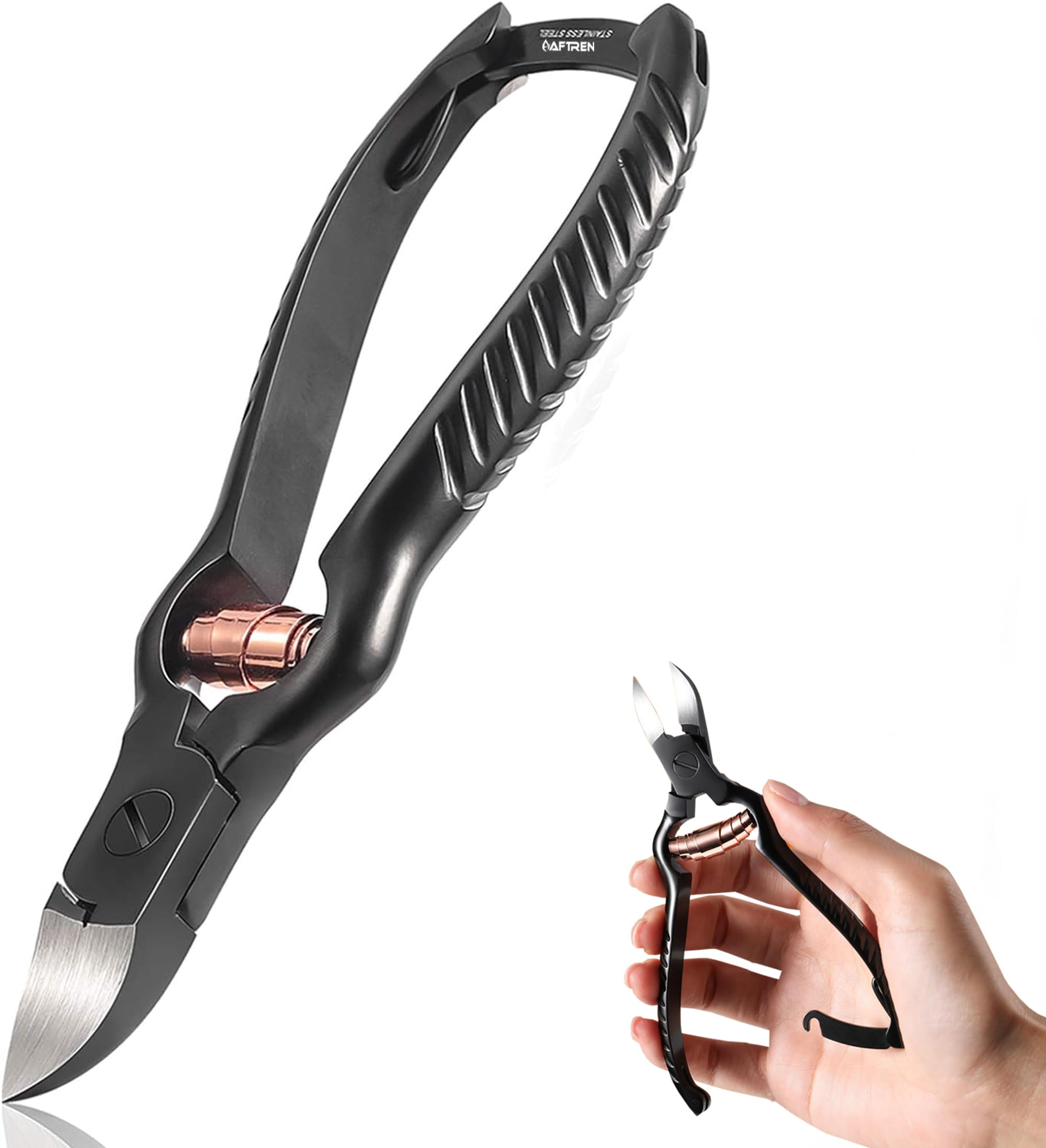 DURABLE AND SHARP: AFTREN nail clippers are made of durable stainless steel which can lightly cut any type of thick nail, AFTREN nail clipper can also prevent oxidation, corrosion and rust because it is covered with BO oxide film coating. Ergonomically Designed Nail Clippers: Perfectly aligned Colcannon curved jaws are designed for the natural shape of your nails, which can easily and smoothly cut rough, thick and hard nails or hard-to-cut toenails. The improved long handle is made of stainless steel with anti-slip design on the lever, which is stable, flexible and comfortable when holding lightly. FLEXIBLE AND SAFE DESIGN: Our ingrown toenail clippers have a lock and plastic cover that protects the blade during storage or travel, giving you a safe and convenient user experience. AMAZING APPEARANCE AND PACKAGING: Cutting-edge and gorgeous design make AFTREN toenail clippers a perfect gift. Premium packaging makes it ready to send as a gift to your families or friends. RISK-FREE PURCHASE: AFTREN offers 100% satisfaction in our hassle-free replacement guarantee. Excellent customer service leaves you worry-free about your purchase. If you have any questions or dissatisfaction, please feel free to contact us. SAFETY WARNING No