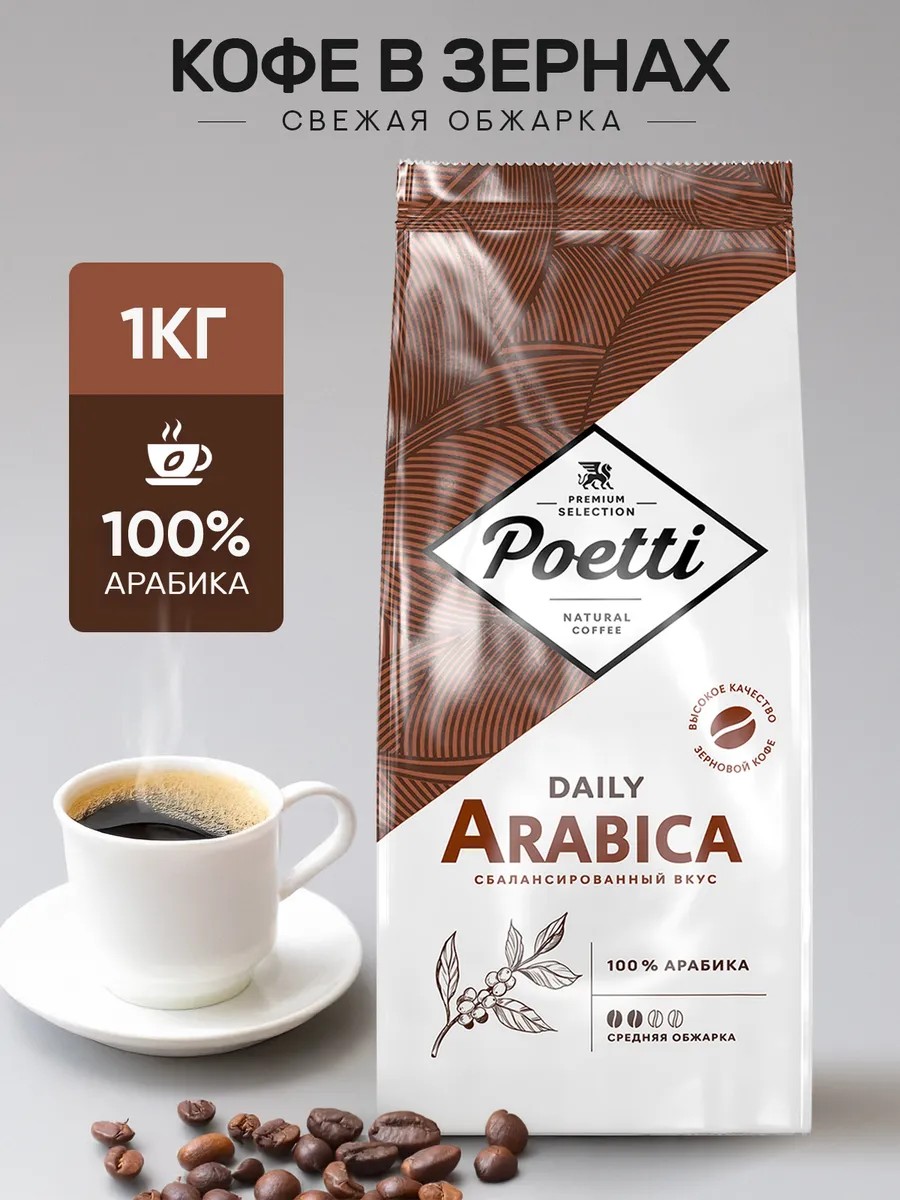 Кофе в зёрнах Poetti Daily Arabica Standard — это отличный кофе для тех, кто ищет высококачественный напиток с натуральным вкусом и ароматом. В состав этого кофе входят только 100% отборные зерна арабики, что гарантирует выдающееся качество и насыщенность каждого глотка. Благодаря средней степени обжарки, зерна арабики раскрывают все тонкости своего аромата и вкуса. Кофе обладает сладким, сбалансированным вкусом, в котором гармонично сочетаются ноты спелых цитрусов и молочного шоколада, что делает его поистине уникальным.