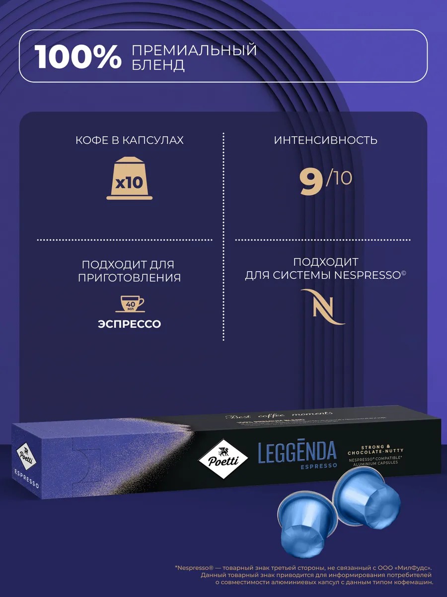 Кофе в капсулах Leggenda Espresso, 10 капсул (тип Nespresso)