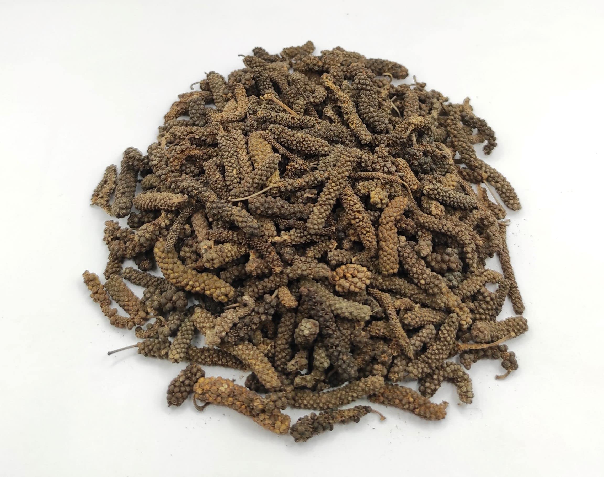 Description: Piper longum, commonly known as long pepper, Indian long pepper, or thippali, is a flowering vine in the Piperaceae family, cultivated for its fruit, which is typically dried and used as a spice and condiment. It is a slender climbing plant with dark, oval, heart-shaped, toothed leaves. Inside each flower are tiny spikes that resemble small sticks about the size of a poppy seed. These spikes turn red when ripe and black when dried, ready for use as a spice. Long pepper has a flavor similar to, but spicier than, black pepper. It is considered a rare spice, but is well-known in Indian cuisine, where it is used in pickles and other highly spiced dishes. Long pepper is also found in many North African spice blends and in Indonesian and Malaysian dishes. It pairs well with most types of meat, artichokes, asparagus, mushrooms, various types of spicy cheeses, and wines. In Thailand, it's used in soups and fried foods, and in Ethiopia in stews. It also goes well with most spices and herbs.Our spices are 100 free of artificial colors and preservatives. Expiration date: Printed on the bag. Origin: Germany. Scientific name: Piper longum. Common name: Long pepper.La description: Piper longum, communément appelé poivre long, poivre long indien ou thippali est une liane à fleurs de la famille des Piperaceae, cultivée pour son fruit, qui est généralement séché et utilisé comme épice et condiment. C'est une plante grimpante élancée aux feuilles sombres dentées ovales, en forme de cœur. À l'intérieur de chaque fleur, il y a de minuscules pointes qui ressemblent à de petits bâtons de la taille d'une graine de pavot. Ces pointes deviennent rouges lorsqu'elles sont mûres et deviennent noires lorsqu'elles sont séchées et sont maintenant prêtes à être utilisées comme épice. Le poivre long a un goût similaire mais plus épicé que celui du poivre noir. Il est considéré comme une épice rare, mais il est bien connu dans la cuisine indienne, où il est utilisé pour la préparation de cornichons et de plats très épicés. Le poivre long se retrouve également dans de nombreux mélanges d'épices d'Afrique du Nord et dans les plats indonésiens et malais. Il se marie bien avec la plupart des types de viande, les artichauts, les asperges, les champignons, divers types de fromages épicés et les vins. En Thaïlande, on en met dans les soupes et les frites et en Éthiopie dans les ragoûts. Il se marie également bien avec la plupart des épices et des herbes.Nos épices sont 100 exemptes de colorants artificiels ou de conservateurs. Date d'expiration : Fournie sur le sac. Origine : Allemagne. Nom scientifique : Piper longum. Nom : Poivre Long.Poivre Long Séché Épices Entières 40g - 1,95kg Piper Longum Qualité Premium (85 grammes)