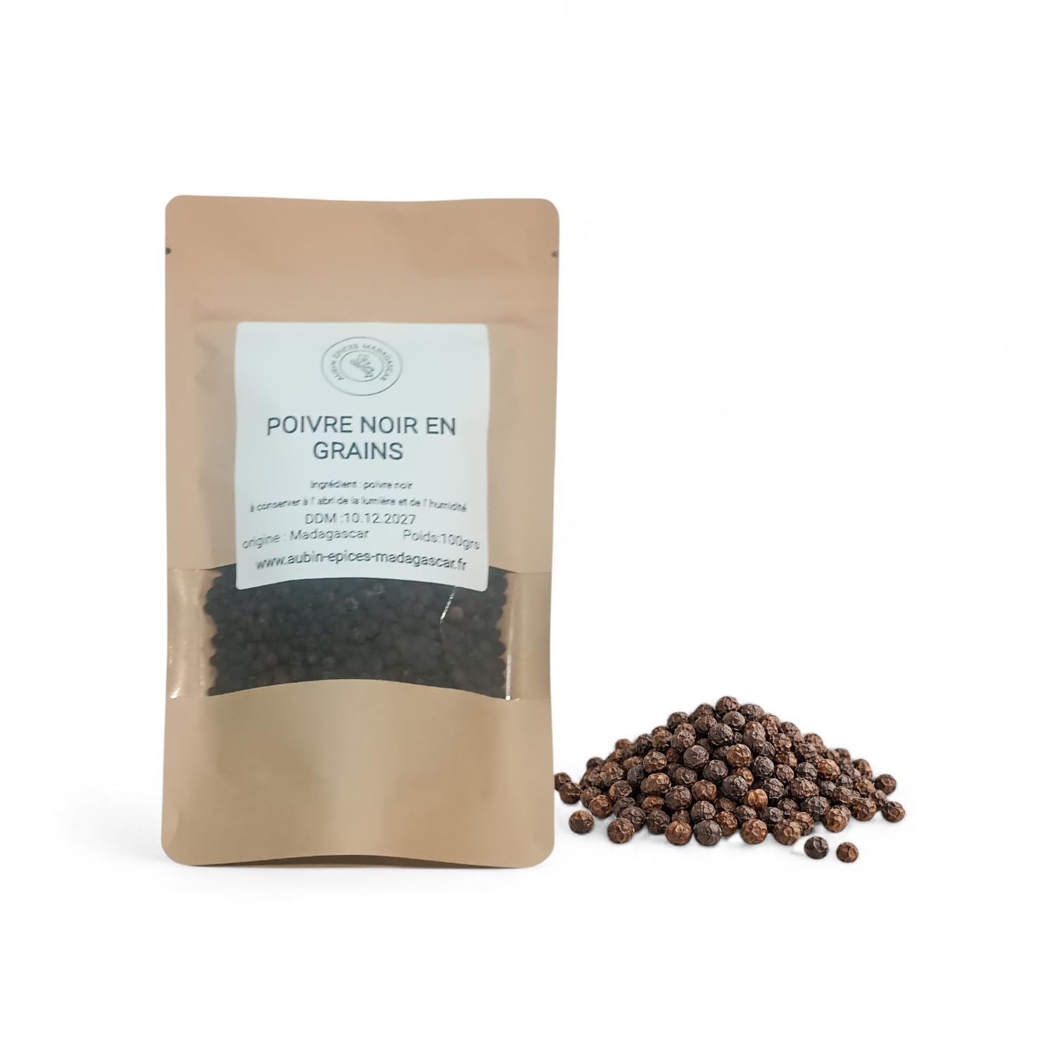 NATURAL PRODUCT: 100 natural pepper made using traditional Malagasy know-how, with no artificial additives or preservatives. PRESERVED FLAVORS: Whole peppercorns to be ground at the last minute to release all the aromatic properties and intense flavor of traditional black pepper. VERSATILE USE: Suitable for seasoning meats, fish, and grilled vegetables, enhancing your dishes with an authentic Malagasy flavor. OPTIMAL STORAGE: store at room temperature, away from light and moisture to maintain its quality. CONVENIENT PACKAGING: 100-gram resealable kraft paper bag to preserve freshness and aroma. SUPERIOR QUALITY: Whole black peppercorns, grown without pesticides, offering an intense flavor and complex aroma. AUTHENTIC ORIGIN: Black pepper from Madagascar, grown in the eastern region, harvested and packaged with care to preserve its exceptional aromas.