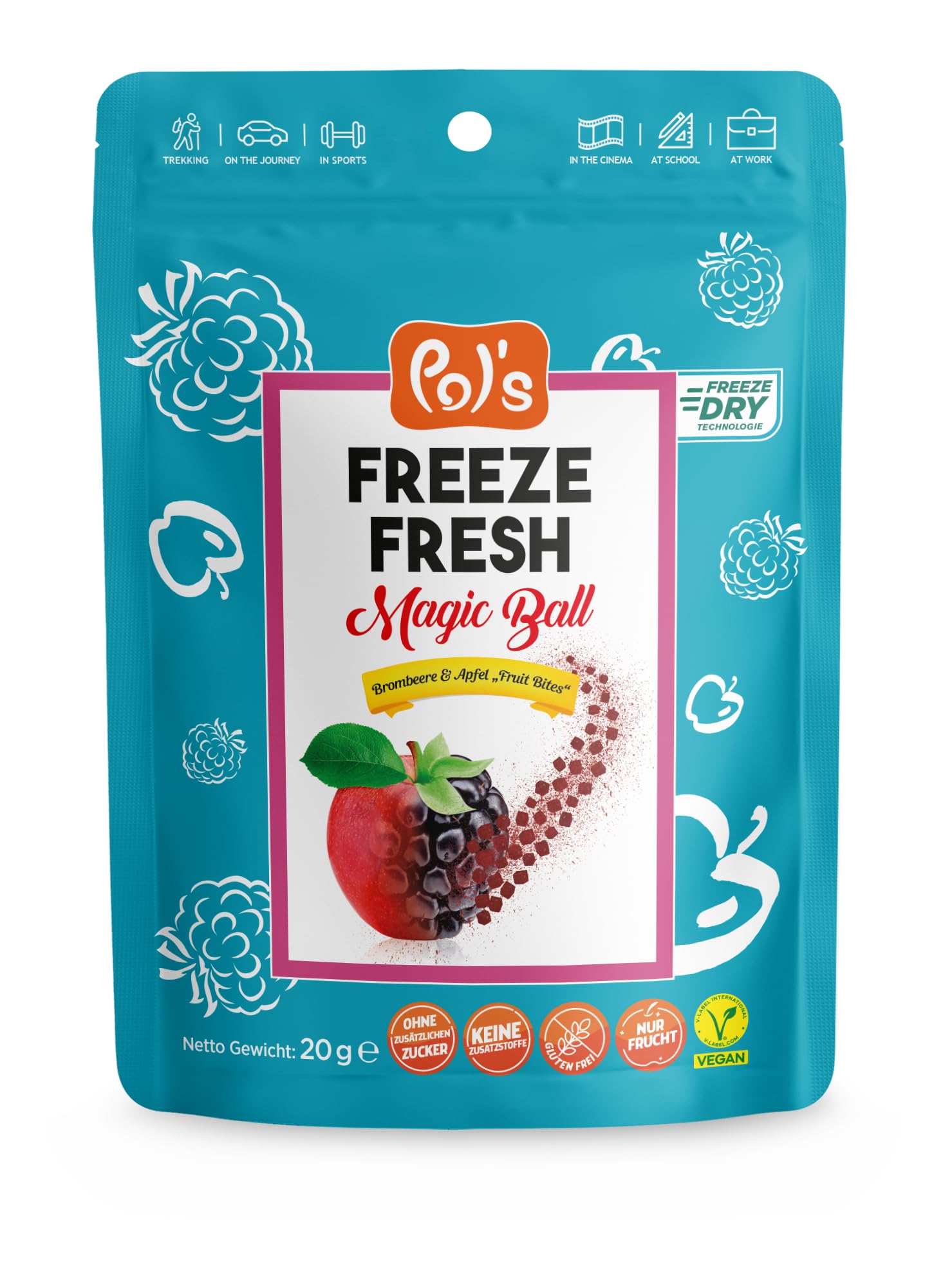 Pol's Freeze Fresh Magic Ball Mûre Pomme « Fruit », Snack sain, 100 fruits, collation innovante, parfaite à emporter, idéale pour le régime, sans additifs, sans sucre ajouté