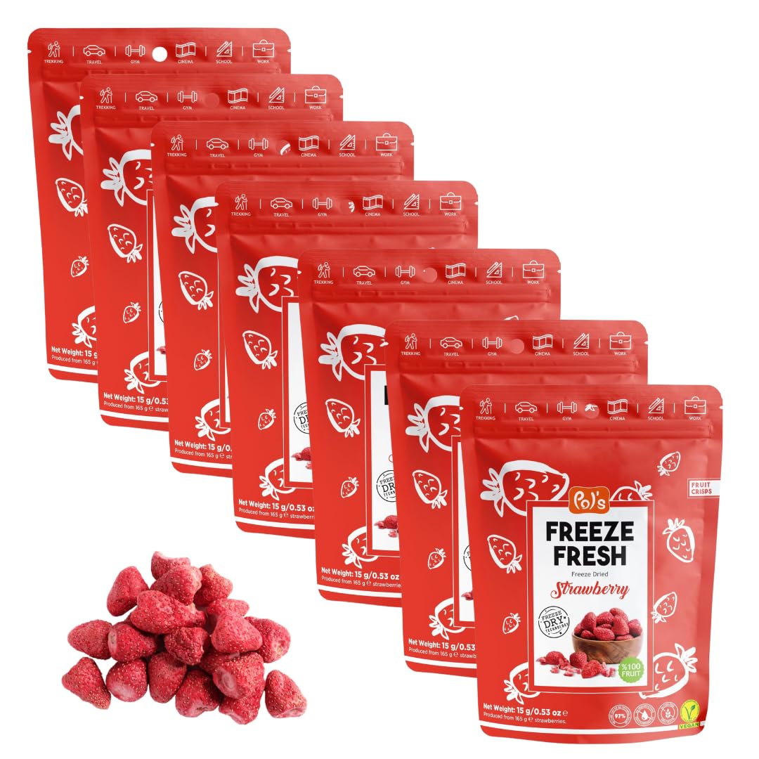 POL'S FREEZE FRESH Lot de 7 fraises lyophilisées 100 fraises entières, sans sucre ajouté, végétaliennes, sans lactose, sans gluten, 7 x 15 g