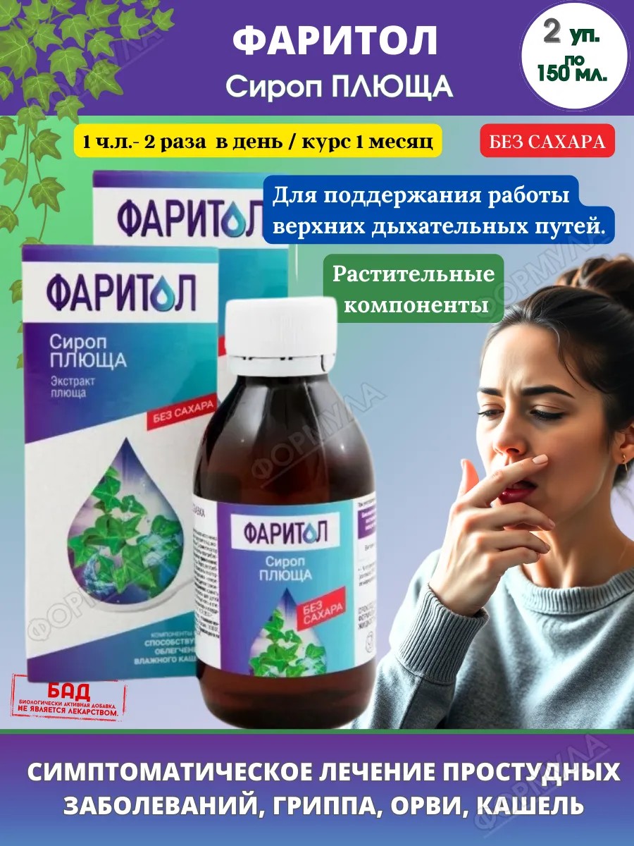 КомплектацияФаритол сироп 150мл mirrolla плющ Х 2шт.
