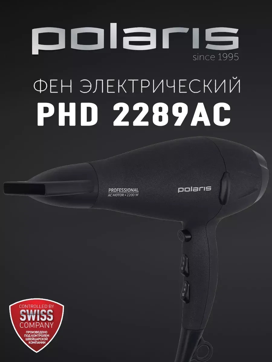 The Polaris PHD 2289AC hair dryer is a powerful, full-size device with a powerful 2200W output and comfortable use. Housed in a black case, the dryer features a cool air option for gentle drying. A built-in generator provides protection against static electricity, making combing easier while preserving moisture.