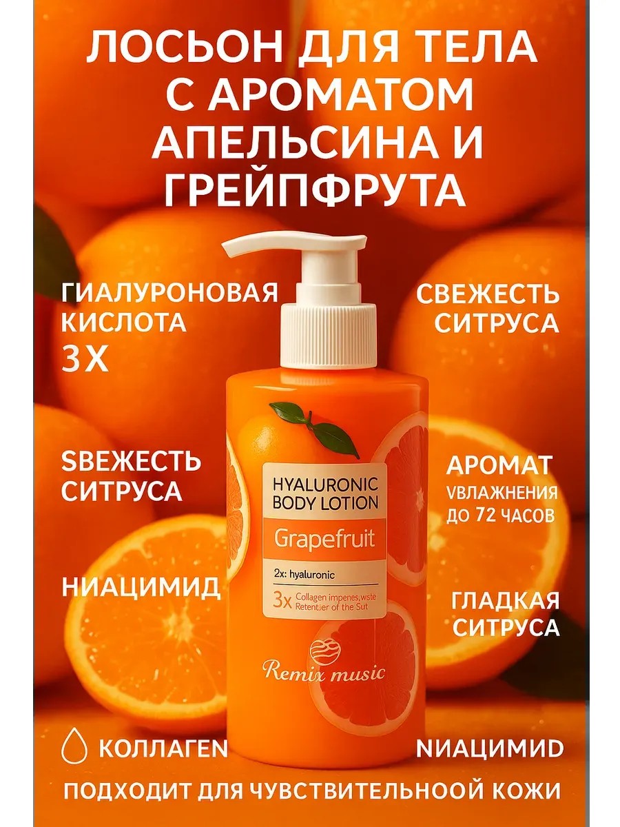 Увлажняющее молочко для тела Remix Music Hyaluronic Body Lotion Grapefruit 300 мл