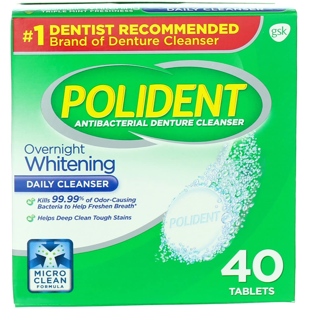 Polident Overnight Whitening Antibacterial Denture Cleanser Triple Mint Freshness 40 ea (Pack of 6)