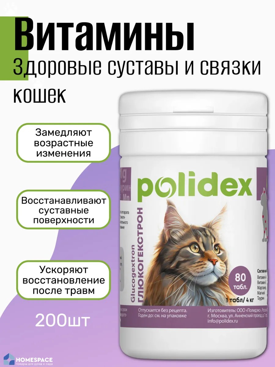 Витамины Polidex для здоровья суставов и связок Глюкогекстрон для кошек