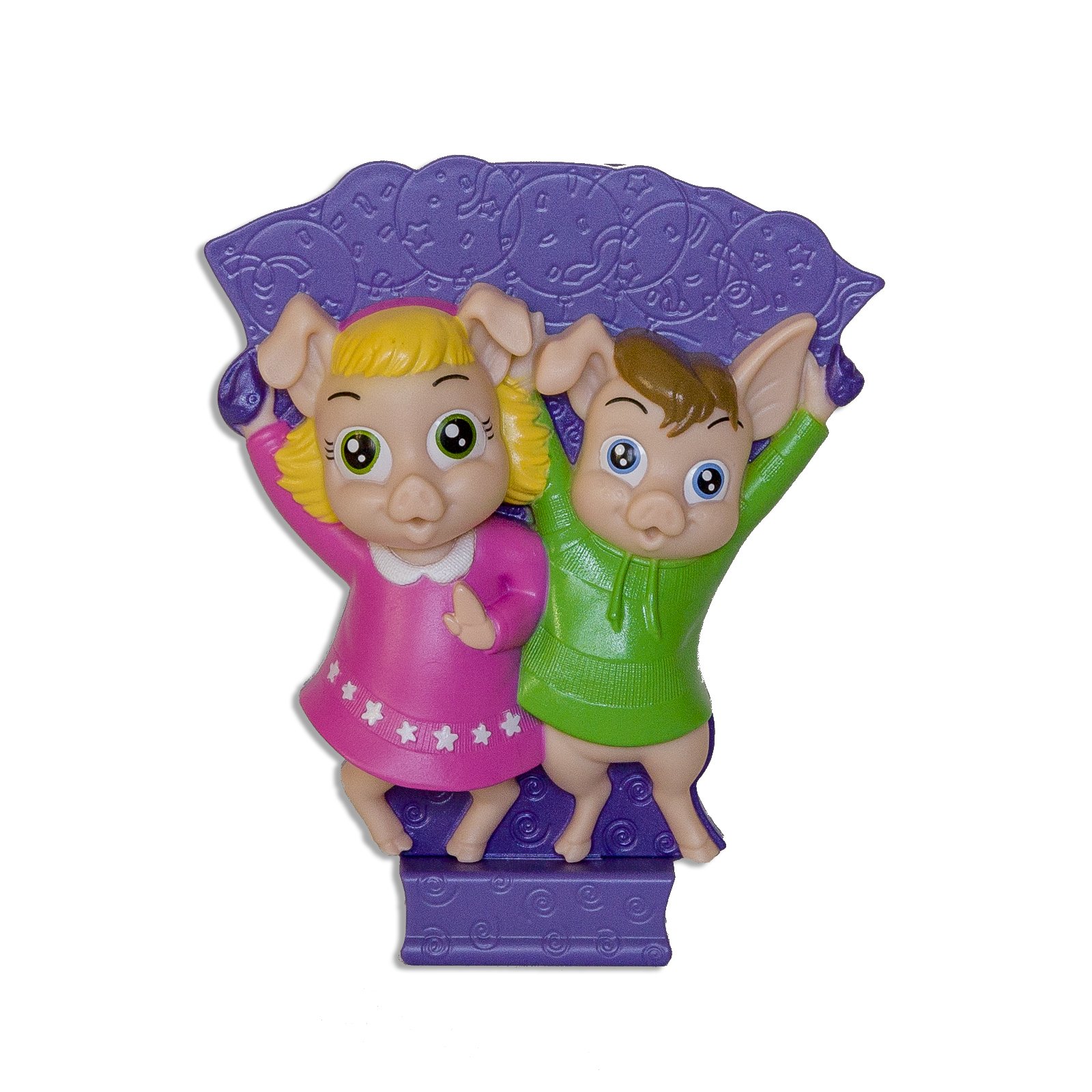 Polite PigPals are talking pigs who help teach kids manners with funny, positive sayings. Parents want their kids to learn manners but it takes lots of repetition and we can't be everywhere at once. Put Polite PigPals in your home and they will catch your kids being good and reward them with funny sayings. Want your kids to put their toys away? Clip Polite PigPals CleanUp Crew on their toybox and when a toy drops in the box it cheers them on with sayings like "Toss it in to win! Great job my friend!" Polite PigPals new Bathroom Buddy thanks kids for flushing and cleverly reminds them to wash their hands. You'll catch them giggling as they wash! Nine rotating messages keep their attention. If coats and backpacks land on your floor rather than a hook, let Polite PigPals HangUp Helpers help out! When your kids hang their things up, Max and Emmie thank them for keeping things tidy. Nine funny sayings make kids giggle. More fun, less nagging!Requires 3 AAA batteries not included. Great for kids of all ages More fun, less nagging. Clip onto the children's bookshelf so books go back where they belong. Great for clothes hampers if your kids clothes tend to hit the floor more often than the hamper. Polite PigPals CleanUp Crew clips onto toyboxes and cheers as your kids put their things away.