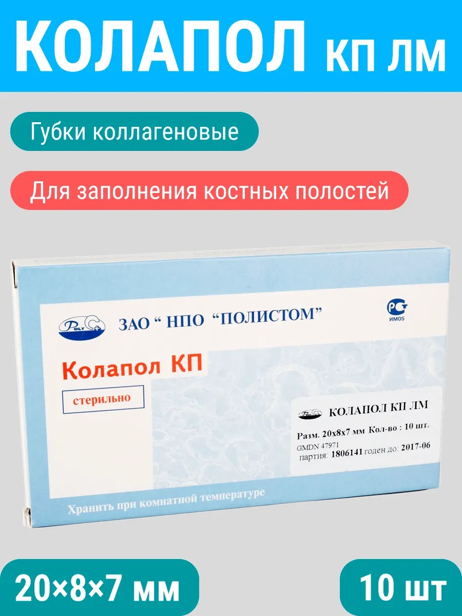 ПОЛИСТОМ Колапол КП ЛМ губки коллагеновые с гидроксиапатитом