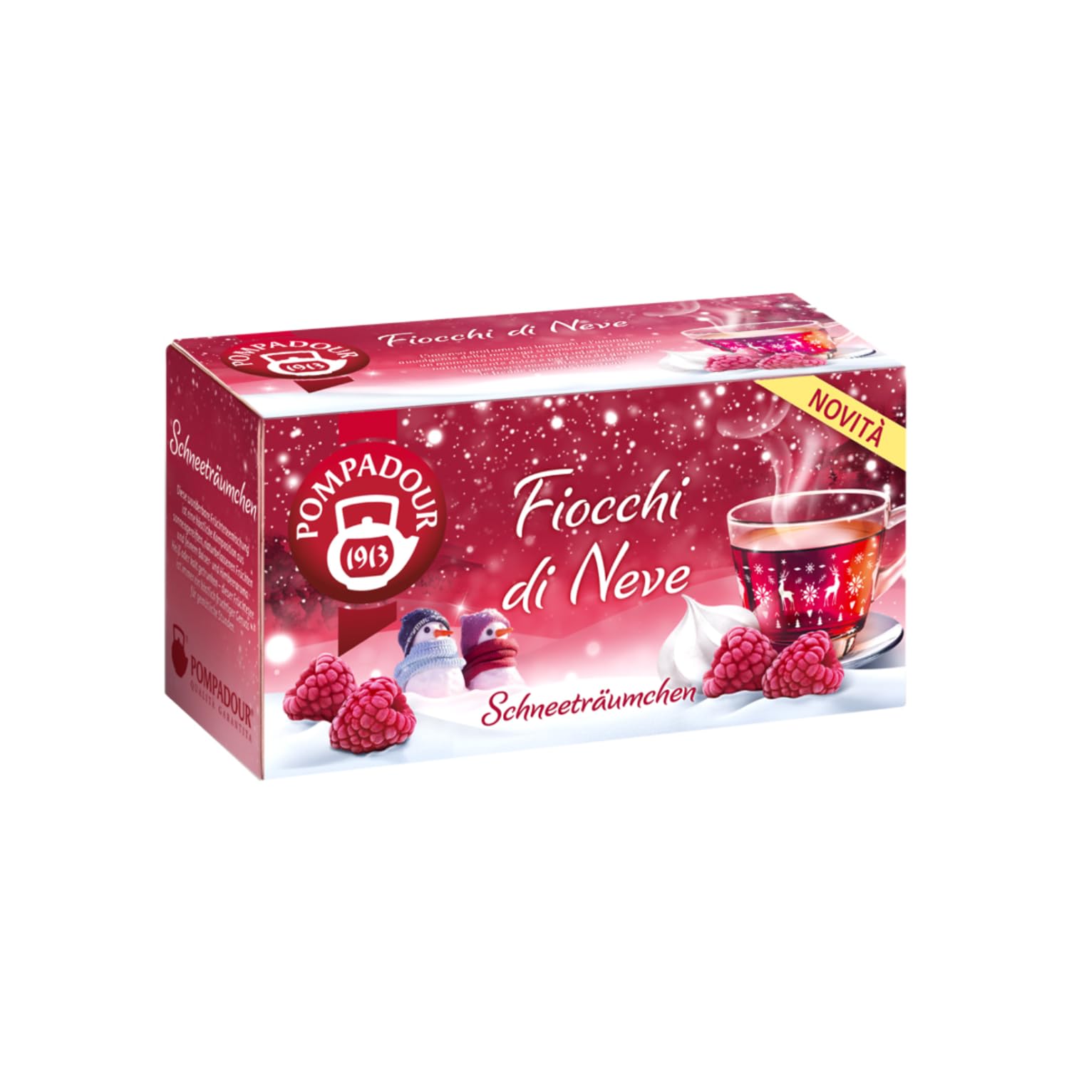 POMPADOUR TE' Constantly striving for quality. From 1964 to the present day, the POMPADOUR TE' brand has become a symbol of quality, responsibility, and excellence: a success story marked from its inception by a strong commitment to innovation. With over 100 products, POMPADOUR TE' now offers the largest selection on the Italian market. The parent company, R. Seelig Hille Sas, was founded in Dresden on July 14, 1882. In 1892, Rudolf Anders and Eugen Nissle, two young, pioneering entrepreneurs, took over the company and introduced one of the most revolutionary innovations in the tea market: they began selling pre-packaged tea blends. Until then, loose-leaf tea could only be purchased in specialty shops, where it was found in large aluminum cans. Anders and Nissle, however, began offering it pre-packaged, introducing the idea that this way the tea was better preserved hygienically and its aroma was better retained. These elegant boxes, made of paper shimmering with gold and silver, resembled small jewels and immediately appealed to women, who frequently bought them and took them home as if they were precious gifts. This intuition laid the foundation for the company's success and its future international renown. "Snowflakes": Fruit blend flavored with meringue and raspberries for infusion (20 tea bags - 45 grams). Made in Germany. Caffeine-free. [THE BRAND] - From 1964 to the present day, the Pompadour Tè 1913 brand has become a symbol of quality, responsibility, and excellence. A success story marked from its inception by a strong commitment to innovation. [THE FILTER] - One of the most revolutionary innovations in the tea market was selling it in tea bags. Pompadour implemented this by introducing the idea that tea bags would keep better and preserve its aroma. INGREDIENTS Hibiscus, apple, rosehip, meringue flavoring 5 , cream flavoring, stevia leaves, raspberry flavoring 3 , raspberries. Naturally gluten-free. INSTRUCTIONS Pour hot (not boiling) water over one tea bag in a cup. Let it steep for 3 to 5 minutes. Remove the bag and enjoy. For a more intense flavor, increase the steeping time. SAFETY WARNING May contain allergens. See more POMPADOUR TE' Constantly striving for quality. From 1964 to the present day, the POMPADOUR TE' brand has become a symbol of quality, responsibility, and excellence: a success story marked from its inception by a strong commitment to innovation. With over 100 products, POMPADOUR TE' now offers the largest selection on the Italian market. The parent company, R. Seelig Hille Sas, was founded in Dresden on July 14, 1882. In 1892, Rudolf Anders and Eugen Nissle, two young, pioneering entrepreneurs, took over the company and introduced one of the most revolutionary innovations in the tea market: they began selling pre-packaged tea blends. Until then, loose-leaf tea could only be purchased in specialty shops, where it was found in large aluminum cans. Anders and Nissle, however, began offering it pre-packaged, introducing the idea that this way the tea was better preserved hygienically and its aroma was better retained. These elegant boxes, made of paper shimmering with gold and silver, resembled small jewels and immediately appealed to women, who frequently bought them and took them home as if they were precious gifts. This intuition laid the foundation for the company's success and its future international renown. "Snowflakes": Fruit blend flavored with meringue and raspberries for infusion (20 tea bags - 45 grams). Made in Germany. Caffeine-free. [THE BRAND] - From 1964 to the present day, the Pompadour Tè 1913 brand has become a symbol of quality, responsibility, and excellence. A success story marked from its inception by a strong commitment to innovation. [THE FILTER] - One of the most revolutionary innovations in the tea market was selling it in tea bags. Pompadour implemented this by introducing the idea that tea bags would keep better and preserve its aroma. INGREDIENTS Hibiscus, apple, rosehip, meringue flavoring 5 , cream flavoring, stevia leaves, raspberry flavoring 3 , raspberries. Naturally gluten-free. INSTRUCTIONS Pour hot (not boiling) water over one tea bag in a cup. Let it steep for 3 to 5 minutes. Remove the bag and enjoy. For a more intense flavor, increase the steeping time. SAFETY WARNING May contain allergens. See morePompadour Mélange de Fruits Saveur Meringue et Framboise Infusion Pomme, Rose Musquée, Framboise - 20 Filtres (45 Gr) Tisane flocons de neigeDESCRIPTION DU PRODUIT DESCRIPTION DU PRODUIT POMPADOUR TE' En recherche constante de qualité. De 1964 à aujourd'hui, la marque POMPADOUR TE' est devenue un symbole de qualité, de responsabilité et d'excellence : une success story, marquée depuis sa naissance par une forte volonté d'innovation. Avec plus de 100 produits, POMPADOUR TE' propose aujourd'hui le plus grand assortiment du marché italien. La société mère R. Seelig et Hille Sas est fondée à Dresde le 14 juillet 1882. En 1892, Rudolf Anders et Eugen Nissle, deux jeunes entrepreneurs à l'esprit pionnier, reprennent l'entreprise et introduisent l'une des innovations les plus révolutionnaires sur le marché du thé. : d'abord, ils commercialisent des mélanges de thé conditionnés. Jusqu'alors, le thé ne pouvait être acheté en vrac que dans les mags spécialisés, où on le trouvait dans de grandes canettes en aluminium. Anders et Nissle commencent cependant à le proposer déjà emballé, introduisant l'idée que de cette manière le thé est mieux conservé d'un point de vue hygiénique et préserve mieux son arôme. Ces élégantes boîtes, réalisées en papier brillant d'or et d'argent, ressemblent à de petits bijoux et séduisent immédiatement les femmes, qui les achètent fréquemment et les apportent chez elles comme s'il s'agissait d'un cadeau précieux. Cette intuition pose les bases du succès de l'entreprise et de sa future renommée internationale. "Flocons de neige" : mélange de fruits aromatis