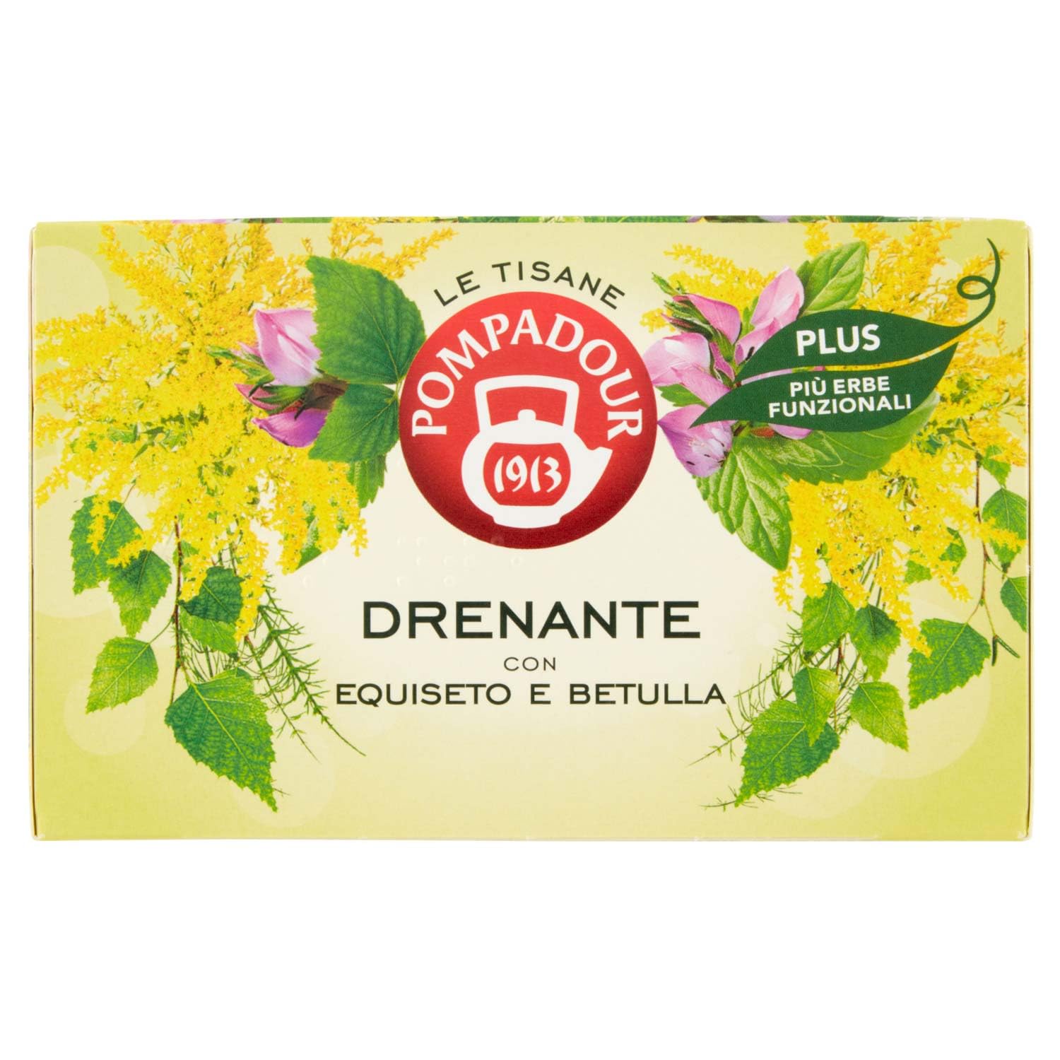 Pompadour Tisana 18 x 2.2g Draining Plus Filters, 39g INGREDIENTS Horsetail 30 , Birch Leaves 25 , Goldenrod (Solidago virgo), Spiny Onion Root, Peppermint, Licorice Root. This product is naturally gluten-free and suitable for a vegan diet. SAFETY WARNING For external use only. Avoid contact with eyes. Keep away from direct flame or heat source. See more
