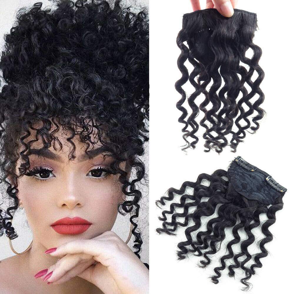 10" Human Hair Topper 8x12cm Rose Base Curly Clip in Hairpiece for Women Cover Thin Hair Black