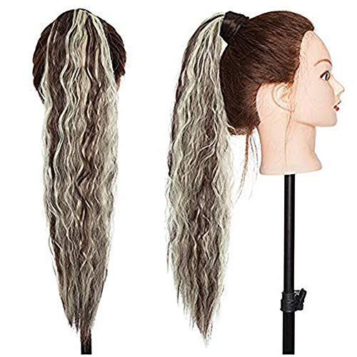 Ponytail Clip in Pferdeschwanz Zopf Extension Haarteil Haarverlängerung Hair Piece Corn Wavy gewellt wie Echthaar Braun & Blond Bleichen 20"(50cm)