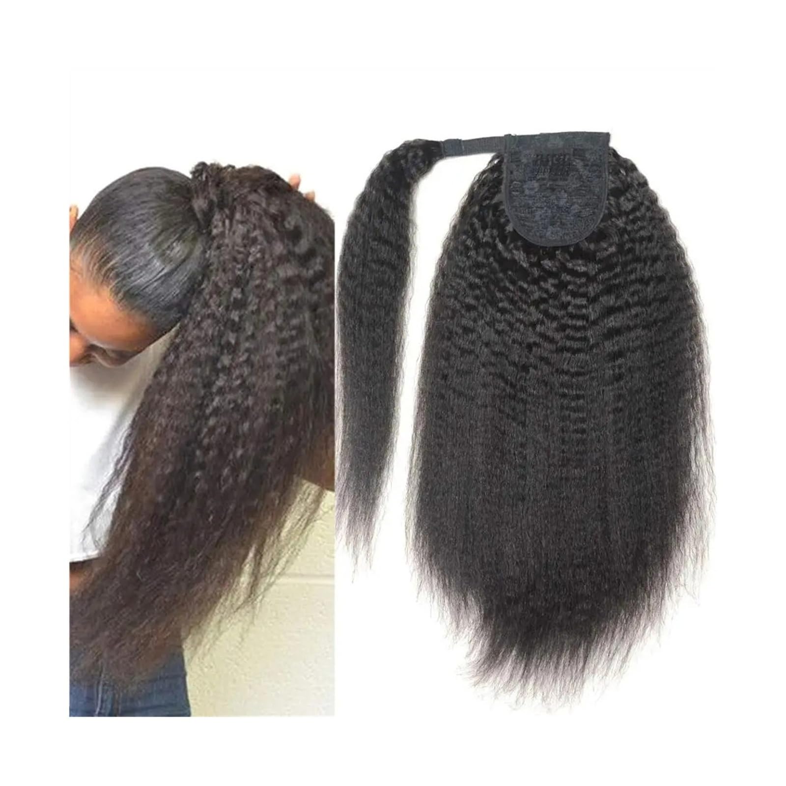 An attractive ponytail hairstyle shows up instantly , perfect for switching up your hair-look in seconds. Human Hair Ponytail Kinky Straight Wrap Around Ponytail Extensions Brazilian Remy Hair Yaki Pony Tail Hairpiece Clip In Ponytail Extensions Product Name: Kinky Straight Wrap Around Ponytail Extensions Hair Material: Brazilian Human Hair Hair Sytle: Kinky Straight Length: 10-24 Inch Color: Natural Black Occasions: Suitable for Everyday Wear, Cosplay, Dating, Parties and Other Occasions. Packing list: 1Pcs * Kinky Straight Human Hair Ponytail Extension Note: 1. Please check the size and color before purchg. 2. Does not include items other than those shown in the product photo. 3. Please note that due to the different monitors, slight chromatic aberration may occur, please understand. 4. The above data is for reference only, the size is manual measurement, each variable may be different, please refer to the actual product, thank you.Easy to Manage: Wash your hair with shampoo and conditioner every week and let it dry naturally. Moisturizing spray is the best tool to restore hair to its original condition. Please do not comb the hair when it is wet. Suitable for Different Occasions: Sexy looks, suitable for all fashion/glamour/elegant many occasions such as party, date, shopping, dinner, banquet, cocktail, etc. Advantage: The Ponytail Hair Extensions is a Simple and Fast Hair Extension Application. You can Have Longer, Thicker, and Fuller Beautiful Hair in Just a Few Minutes. It can Also Last Perfectly all Day Without Any Adjustments. Easy to Wear: Wrap Around Ponytail Hair Pieces, Easy to Wear and Take off By Yourself, No Damage to Your Own Hair. With the Magic Paste Design, You don’t Need to Adjust it Frequently, the Ponytail Extension can Hold Place, Convenient and Save Your Time. Hair Material: 100% Real Human Hair, High Quality. Wrap Around Ponytail Hair Extensions Human Hair,Soft natural, reusable, washable. no shedding, durable, reusable, and can last long more than 12 months. Ponytail Extension can suit different occasions, such as Daily use, Halloween, Concerts, Fashion show, Theme party, Wedding, Dating, Masquerade, Evening party, Carnival and Any Other Occasions. Also will be a great gift idea for friends or family.