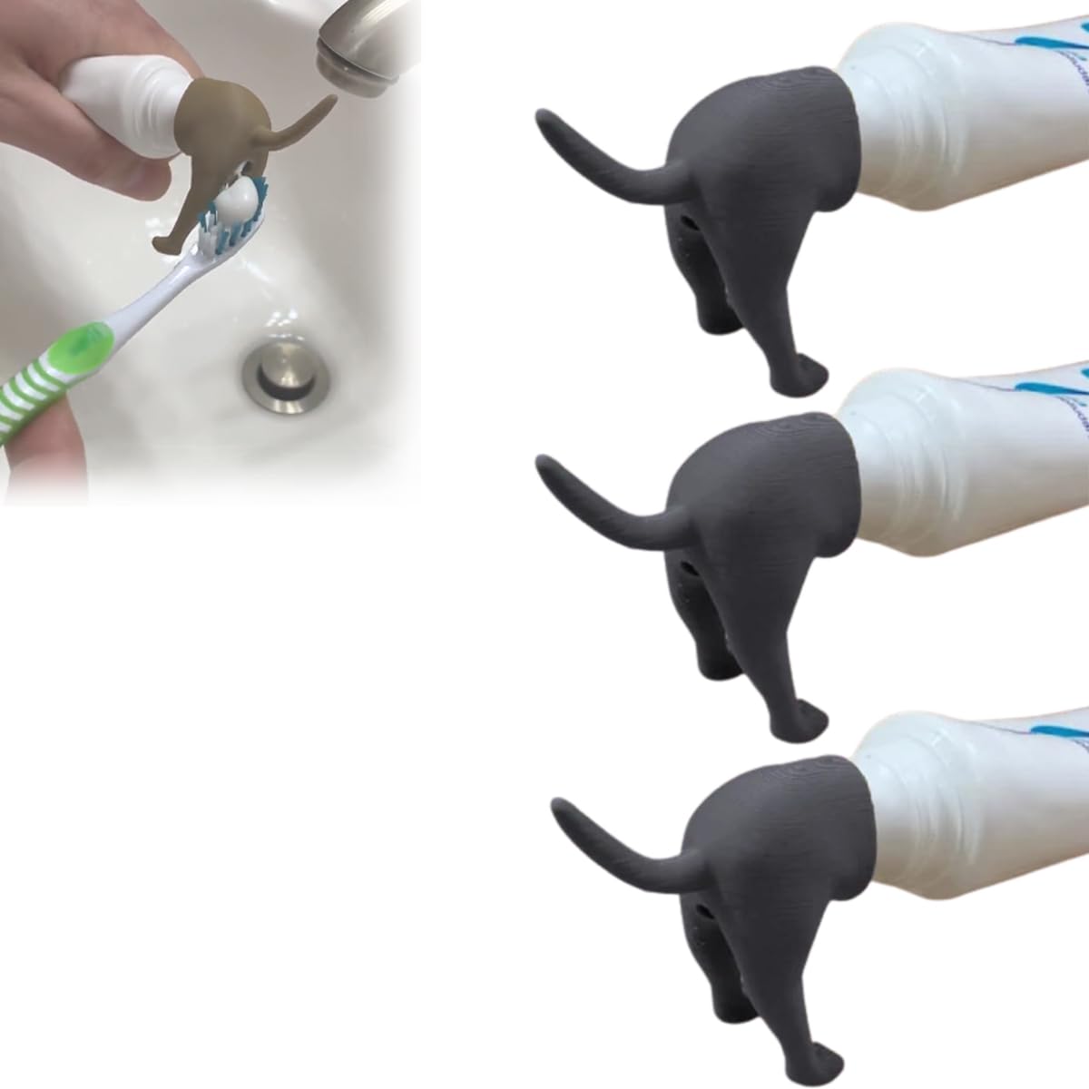 Pooping Dog Butt Toothpaste Topper Puppy Butt Toothpaste Cap Dispenser - Hilarious Gift for All Ages (Gray 3-Pack) Grey 3-Pack