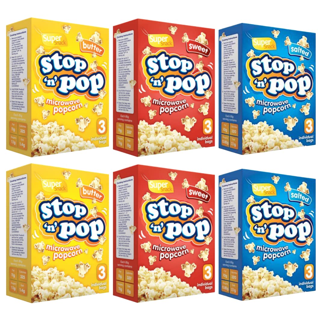 PRODUCT DESCRIPTION Convenient and Easy to Use: Microwave Popcorn is incredibly convenient to prepare. Simply place the bag in the microwave, follow the instructions, and within minutes, you'll have a delicious bowl of freshly popped popcorn. It eliminates the need for stovetop popping or additional equipment, making it a hassle-free option. Delicious Taste: Microwave Popcorn offers a delectable taste that satisfies popcorn cravings. Whether you prefer classic buttery popcorn or flavors like cheese, caramel, or kettle corn, offers a variety of options to suit different taste preferences. Freshness and Quality: Microwave Popcorn is known for its freshness and quality. The popcorn kernels are carefully selected and packaged to ensure optimal freshness, resulting in light and fluffy popcorn with great texture and taste. Portion Control: Microwave Popcorn provides portion-controlled servings, which is a great advantage for those who want to enjoy popcorn without overindulging. Each bag is portioned to offer just the right amount, making it easier to manage portion sizes and satisfy your popcorn cravings without excess. Variety of Options: Microwave Popcorn offers a wide range of flavor options, allowing you to explore and enjoy different popcorn flavors. Whether you're in the mood for a classic movie theater-style popcorn or something more unique, has flavors to cater to various taste preferences. INGREDIENTS Corn (88.5%), Palm Oil, SaltVariety of Options: Microwave Popcorn offers a wide range of flavor options, allowing you to explore and enjoy different popcorn flavors. Whether you're in the mood for a classic movie theater-style popcorn or something more unique, Stop 'n' Pop has flavors to cater to various taste preferences. Portion Control: Microwave Popcorn provides portion-controlled servings, which is a great advantage for those who want to enjoy popcorn without overindulging. Each bag is portioned to offer just the right amount, making it easier to manage portion sizes and satisfy your popcorn cravings without excess. Freshness and Quality: Microwave Popcorn is known for its freshness and quality. The popcorn kernels are carefully selected and packaged to ensure optimal freshness, resulting in light and fluffy popcorn with great texture and taste. Delicious Taste: Microwave Popcorn offers a delectable taste that satisfies popcorn cravings. Whether you prefer classic buttery popcorn or flavors like cheese, caramel, or kettle corn, Stop 'n' Pop offers a variety of options to suit different taste preferences. Convenient and Easy to Use: Microwave Popcorn is incredibly convenient to prepare. Simply place the bag in the microwave, follow the instructions, and within minutes, you'll have a delicious bowl of freshly popped popcorn. It eliminates the need for stovetop popping or additional equipment, making it a hassle-free option.