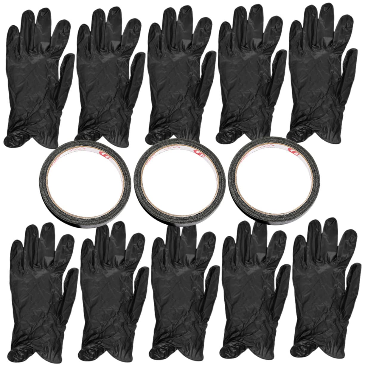 Package List 10 x Gloves 3 x Rolls of Tapes Features -Size:22.00X11.60X0.30cm/8.65X4.56X0 nail art gloves. -Material:PVC, paper protection tape -Color:Black gloves -These manicure gloves and tapes are suitable for nail art, and for home and salon use gel nail gloves. -The glove is designed for protecting the skin of the hand from ultraviolet rays of the nail dryer light nail tape for nail art. -Wearing this pair of practical gloves, you can do manicure with confidence, safe and practical nail striping tape. -With this tape, you can fix anti- gloves during manicure and prevent them from falling off nail art supplies. -They are very convenient to use, and you can cut the appropriate length of the tape according to your needs gloves for gel nail . Goods Description gloves Nail treatments require direct on the fingers to dry the gels on the nails, but rays can cause damage to the skin, causing it to blacken, dry and age. gloves fixing tape Use this product can directly isolate harmful light damage to the skin, protect the skin