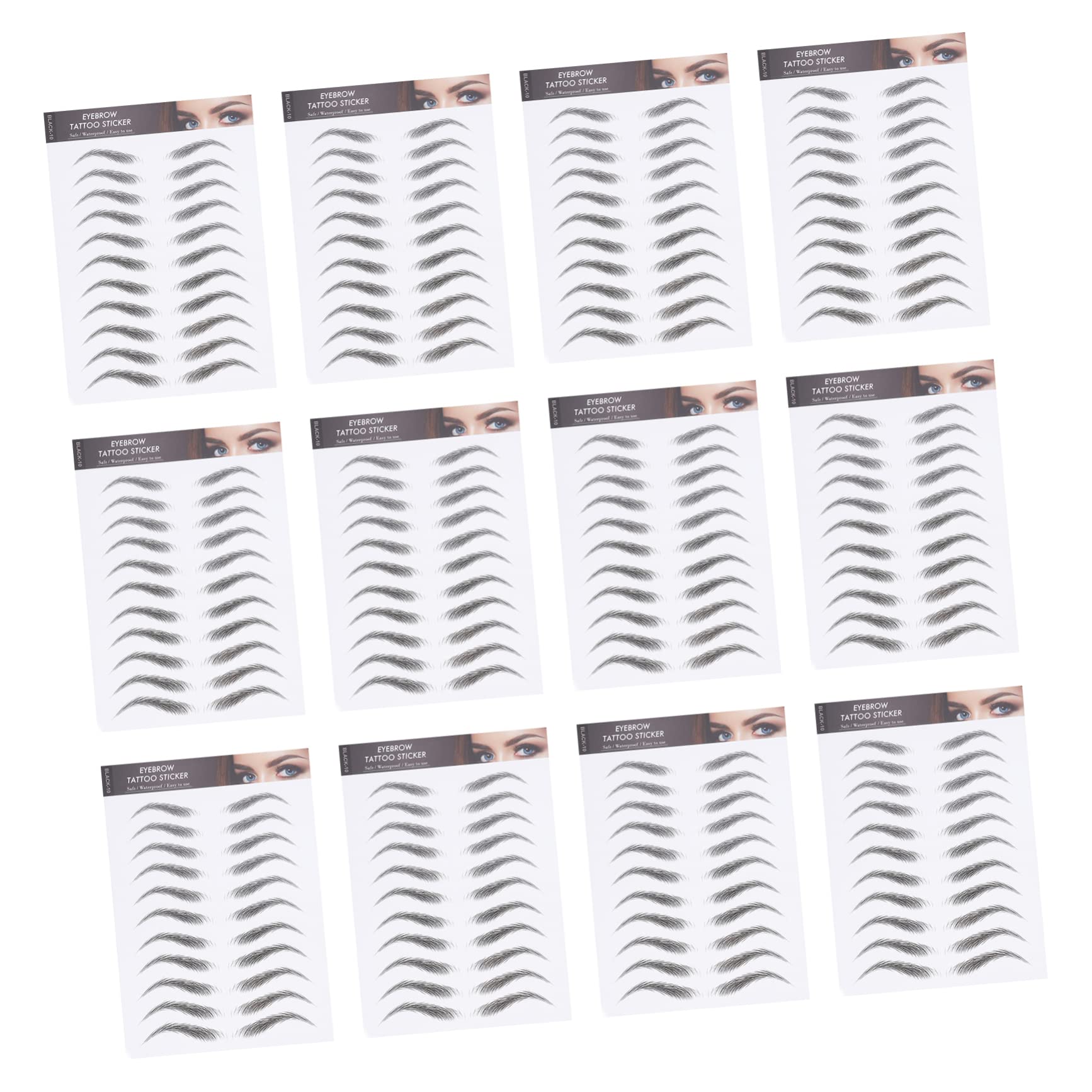 POPETPOP 12 Sheets Waterproof Eyebrow Stickers Makeup Tools Realistic Fake Eyebrows Temporary Brow Tattoos 4d