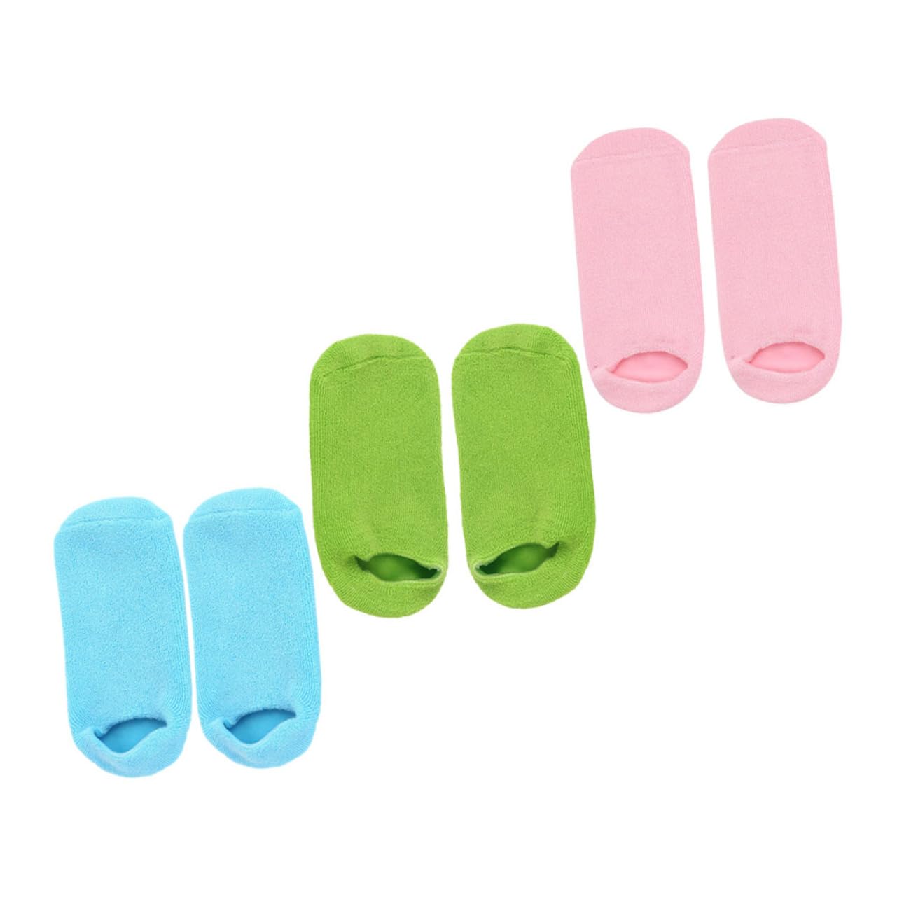 Package Include 3 x pairs of socks Features -Color: Pink, green, blue Moisturizing Socks for Foot Care -Material: Cotton, polyurethane, gels Salon Foot Covers -Size: About 21.50X10.50X3.00cm/8.45X4.13X1 Foot Care Masks. -Help restore beauty and skin through daily moisturizing procedures, and wear comfortably Essential Oil Foot Care Masks. -It can be used with lotion to improve the moisturizing effect and make your feet skin healthier Dry Foot Mask. -Wearing them can help moisturize and repair your chapped skin, making your skin smoother and more delicate Foot Essential Oil Care Products. -Our gel socks are suitable for dry feet, provide good moisturizing effect, and easily moisturize your skin, very practical Moisturizing Dry Feet Masks. -Restore and rebuild your skin's natural moisture balance at the time, enabling it to recover and rebuild from daily wear Essential Oil Care Socks. Goods Information Cracked Heel Socks The gel socks are smooth and moisturizing skin without bad effects.Foot Caring Masks Safe for use.Foot Moisturizing Product This spa gel socks are the solution for your feet care.Foot Care Supplies Continuously help moisturize the skin and restore its natural and healthy appearance, nourish smoothness and increase flexibility