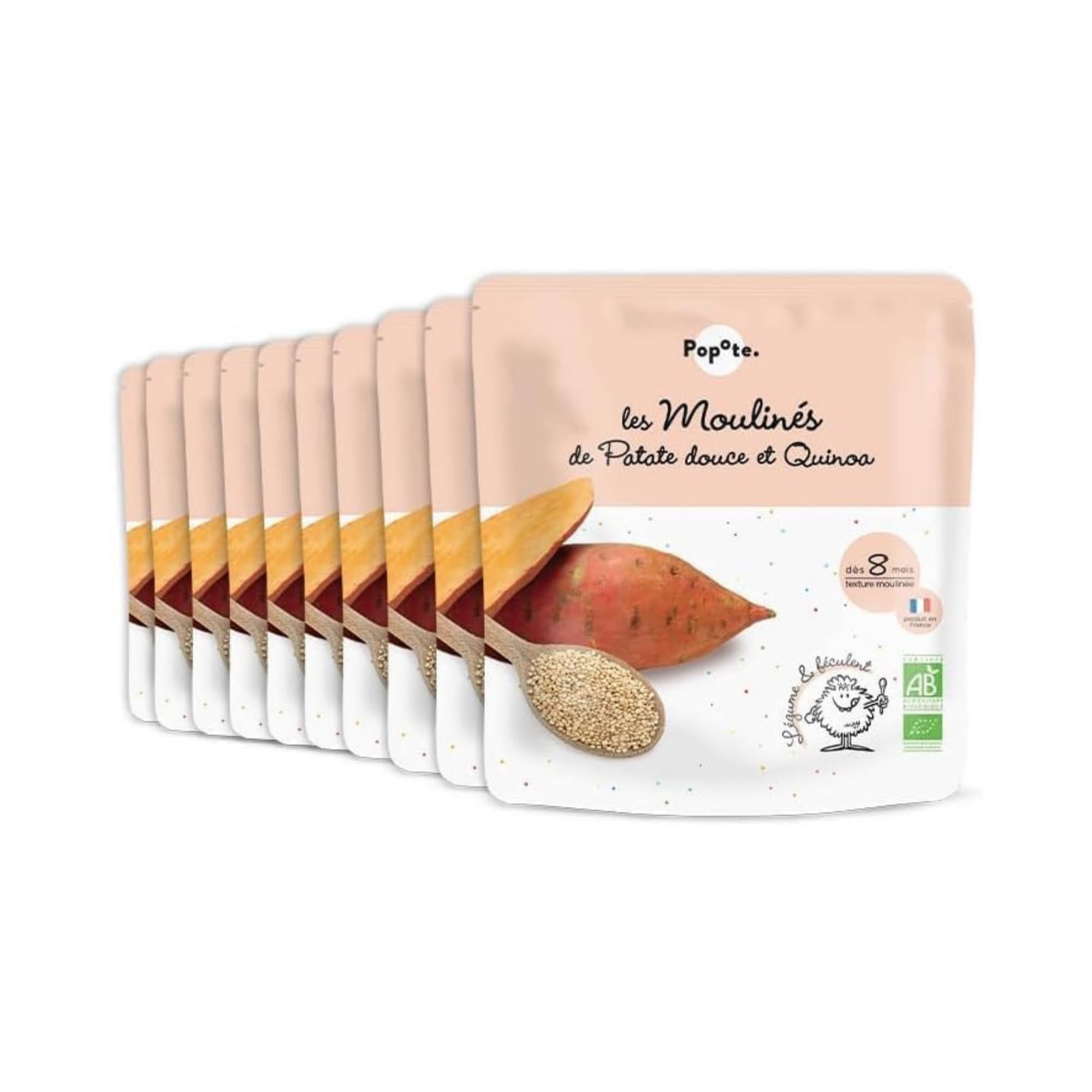 POPOTE - Mouliné Patate Douce Quinoa Bio - Repas Bébé Dès 8 Mois - Sachet Individuel 180g - Recette Simple et Saine - Format Pratique à Emporter - Pack Familial Économique 10 x 180g