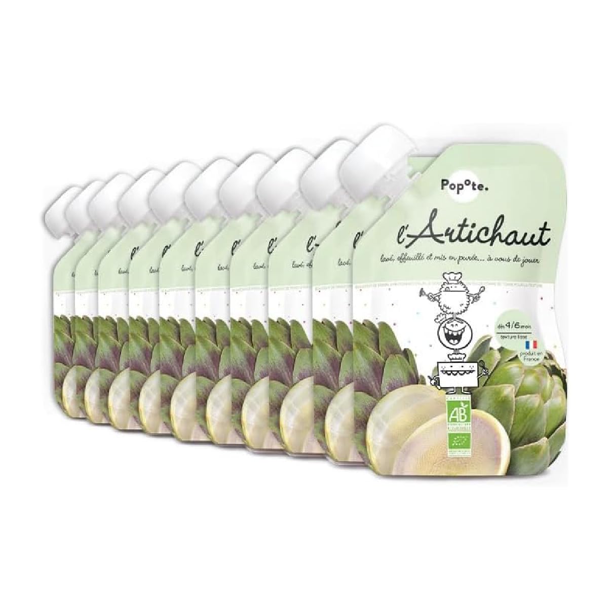 POPOTE - Purée Artichaut Bio - Dès 4 6 Mois - Gourde Individuelle 120 g - Recette Lisse, Équilibrée - Première Découverte des Légumes - Format Pratique à Emporter - Pack Familial 10 x 120 g