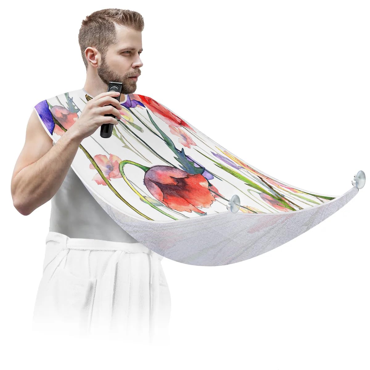 fiber fabric, ensuring exceptional quality. The fabric has a smooth and soft surface that is not sticky to hair, making it comfortable to wear during grooming sessions. It is also waterproof and anti-static, further enhancing its practicality. In addition, it is equipped with two high-quality suction hooks that provide powerful suction without leaving marks on mirrors or tiles. ?Convenient and Easy to Use?: Using our beard hair catcher is a breeze. Just fasten it around your neck using the adjustable strap and secure it to the mirror. Once in place, you can effortlessly proceed with your regular grooming routine. When you're done, simply remove the beard bib from the suction cups. Then brush the collected hair into the trash can for easy cleanup. ?Effortless Hair Cleanup?: Our Poppy Flower beard bib is expertly designed to capture all loose beard hair, mustache, and sideburn trimmings, providing effortless cleanup and keeping your sink immaculately clean. This saves you valuable time that would otherwise be spent on tedious cleaning tasks. Not only does it serve a practical function, but it also adds a stylish touch to your daily grooming routine.