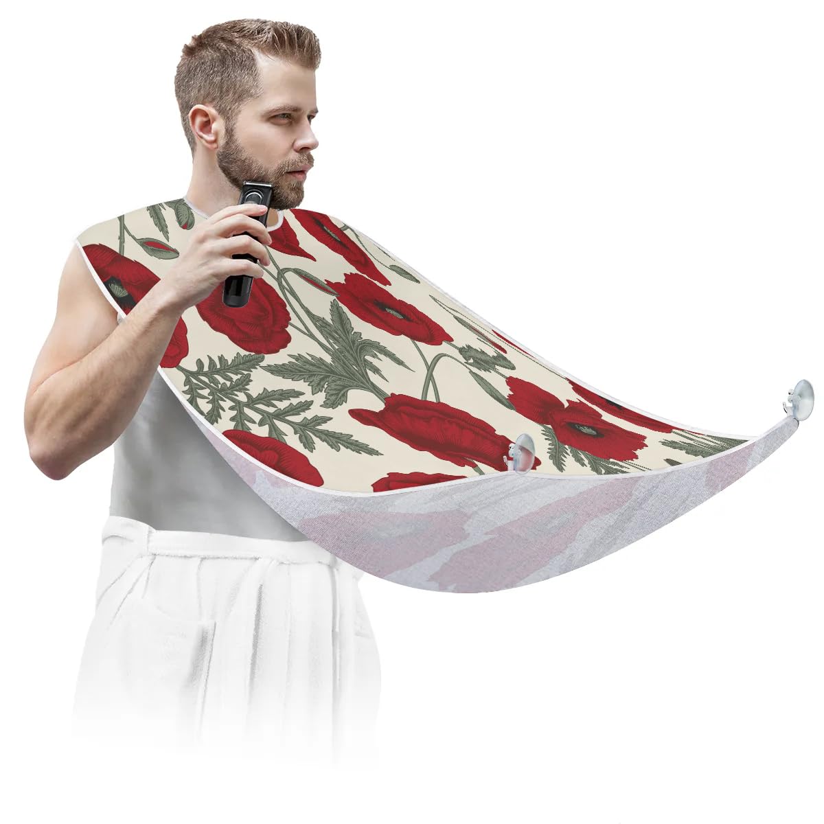 fiber fabric, ensuring exceptional quality. The fabric has a smooth and soft surface that is not sticky to hair, making it comfortable to wear during grooming sessions. It is also waterproof and anti-static, further enhancing its practicality. In addition, it is equipped with two high-quality suction hooks that provide powerful suction without leaving marks on mirrors or tiles. ?Convenient and Easy to Use?: Using our beard hair catcher is a breeze. Just fasten it around your neck using the adjustable strap and secure it to the mirror. Once in place, you can effortlessly proceed with your regular grooming routine. When you're done, simply remove the beard bib from the suction cups. Then brush the collected hair into the trash can for easy cleanup. ?Effortless Hair Cleanup?: Our Poppy Painting beard bib is expertly designed to capture all loose beard hair, mustache, and sideburn trimmings, providing effortless cleanup and keeping your sink immaculately clean. This saves you valuable time that would otherwise be spent on tedious cleaning tasks. Not only does it serve a practical function, but it also adds a stylish touch to your daily grooming routine.