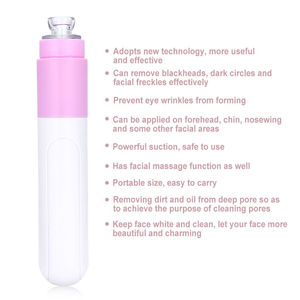 Description: Made from high quality ABS, which guarantees a long service life.Powerful suction power, safe to use.The pore cleaner can effectively remove blackheads, dark circles and facial sprouts.It also has the function of preventing eye folds.Can be applied to forehead, chin, noseewing and some other facial areas.It has a great effect in oil control and skin light.In addition, the pore cleaner also has a facial massage function.Portable size, easy to wear, can be used anytime and anywhere. Characteristics: 1. made of high quality ABS plastic. 2. Strong suction power 3. Oil control, blackhead removal. 4. Face mass function 5. Portable size, easy to wear. Specifications: Article type: Pore cleaner. Material: ABS plastic. Color: see illustration. Requires 1 AA battery (not included in the scope of delivery). Packaging weight: approx. 75 g. Size: approx. 15 x 3 x 2 cm. Scope of delivery: 1 x pore cleaner.portable size, easy to transport.Strong suction power.Face mass function.Leaving - oil control, blackhead removal.Clean skin made of high quality ABS.Beschreibung: Hergestellt aus hochwertigem ABS, das eine lange Lebensdauer gewährleistet. Leistungsstarke Saugleistung, sicher zu bedienen. Der Porenreiniger kann Mitesser, Augenringe und Gesichtsprossen effektiv entfernen. Es hat auch die Funktion, Augenfalten zu verhindern. Kann auf Stirn, Kinn, Nosewing und einige andere Gesichtsbereiche angewendet werden. Es hat eine große Wirkung bei der Ölkontrolle und Hautaufhellung. Darüber hinaus hat der Porenreiniger auch eine Gesichtsmassage-Funktion. Tragbare Größe, einfach zu tragen, kann jederzeit und überall verwendet werden. Eigenschaften: 1. Aus hochwertigem ABS-Kunststoff. 2. Starke Saugkraft 3. Ölkontrolle, Mitesserentfernung. 4. Gesichtsmassagefunktion 5. Tragbare Größe, einfach zu tragen. Spezifikationen: Artikeltyp: Porenreiniger. Material: ABS-Kunststoff. Farbe: siehe Abbildung. Benötigt 1 AA-Batterie (nicht im Lieferumfang enthalten). Verpackungsgewicht: ca. 75 g. Größe: ca. 15 x 3 x 2 cm. Lieferumfang: 1 x Porenreiniger.Tragbare Größe, einfach zu transportieren. Starke Saugkraft. Gesichtsmassagefunktion. Aufhellung – Ölkontrolle, Mitesserentfernung. Saubere Haut aus hochwertigem ABS.Porenreiniger, tragbares Öl, Reiniger und Peeling, Reinigungsgeräte und Bürsten, Kontrolle von Mitessern, Hautaufhellung, elektrische Gesichtsmassage, Porenreiniger