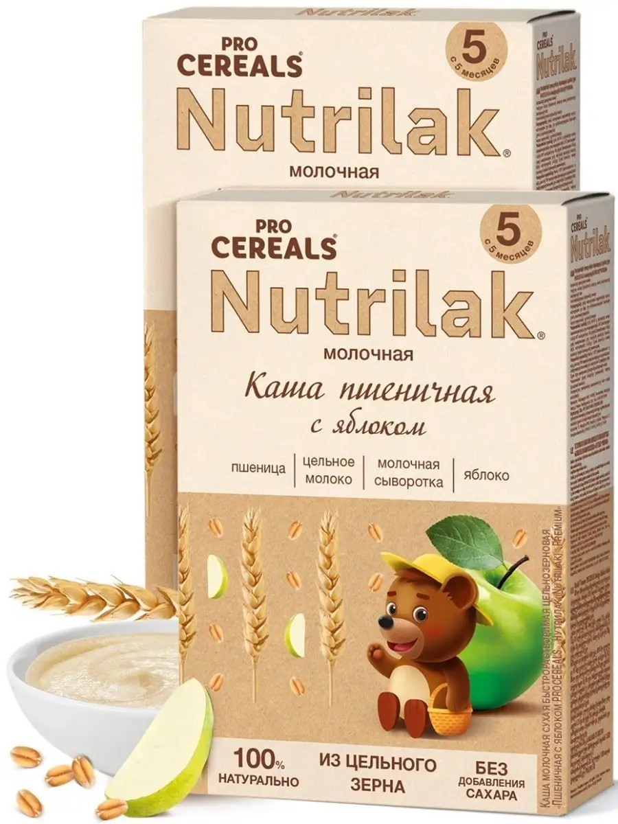 Пшеничная крупа богата витаминами группы B, А, Е, PP и содержит много клетчатки. Вкусная и полезная молочная каша Nutrilak “Пшеничная с яблоком PROCEREALS” придаст ребенку силы и энергию.