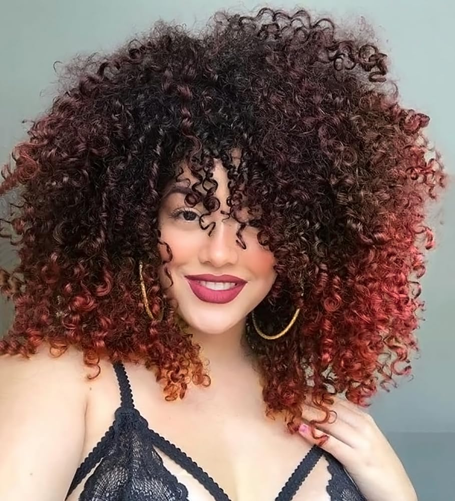 ?Packag?: 1 porsmeer short curly ombre red wig fluffy wig + 1 piece x wig cap. After you have received the wig, you can gently shake your hair to make your hair fluffy, it would be better to use your finger,to comb the curly part.?WITH GREED Specifications? Short curly gray silver wig wigs for black women, length: 14 inches;Weight: 300g.The cap size is 20.5 ""-22.5"".Inside the wig there are two adjustable straps with which you can adjust the most pleasant tight on your head.?Applicable scene? You can find your beauty, regardless of the occasion you are.Daily, costumes, celebrations, concerts, themed parties, wedding, dating or any other occasion you want.?Wig quality? Afro curly wig is soft fibers, heat -resistant, suitable for long -term use.Breathable rose network, comfortable, the scalp fits better, give you more realistic natural appearance.?Personal design? Kinky curly wigs for women, the shaft and curls are very full.You can do your favorite hairstyle by working with your fingers.It brings you comfort and charm.?Packag?: 1 PORSMEER Kurz Lockige Ombre Red wig Flauschige Perücke + 1 Stück x Perückenkappe.Nachdem Sie die Perücke erhalten haben, können Sie das Haar sanft schütteln, um das Haar schnell flauschig zu machen, es wäre besser, den Finger zu verwenden, um den lockigen Teil zu kämmen. ?Perücke Spezifikationen? Kurze lockige Grey Silver Wig Perücken für Black Women, Länge: 14 Zoll; Gewicht: 300g. Die Kappengröße beträgt 20,5 ""-22,5"". Im Inneren der Perücke befinden sich zwei verstellbare Riemen, mit denen Sie die angenehmste Enge auf Ihrem Kopf einstellen können. ?Anwendbare Szene? Sie können Ihre Schönheit finden, egal zu welchem Anlass Sie sich befinden. Täglich, Kostüme, Feierlichkeiten, Konzerte, Themenpartys, Hochzeit, Dating oder jeder andere Anlass, den Sie wünschen. ?Perückenqualität? Afro lockige Perücke ist weiche Fasern, hitzebeständig, geeignet für langfristige Anwendung. Atmungsaktives Rosennetz, bequem, passt die Kopfhaut besser, geben Ihnen realistischeres natürliches Aussehen. ?Perückendesign? Kinky lockige Perücken für Frauen, die Welle und Locken sind sehr voll. Sie können Ihre Lieblingsfrisur machen, indem Sie mit Ihren Fingern arbeiten. Es bringt Ihnen Komfort und Charme.PORSMEER Afro Perücke Damen Natürliche Volle flauschig Haar Kinky Curly Bob Wig mit Pony für frauen, Lockige Synthetische Perücke für party cosplay täglich Schwarzer Mix kupferrote,14inch