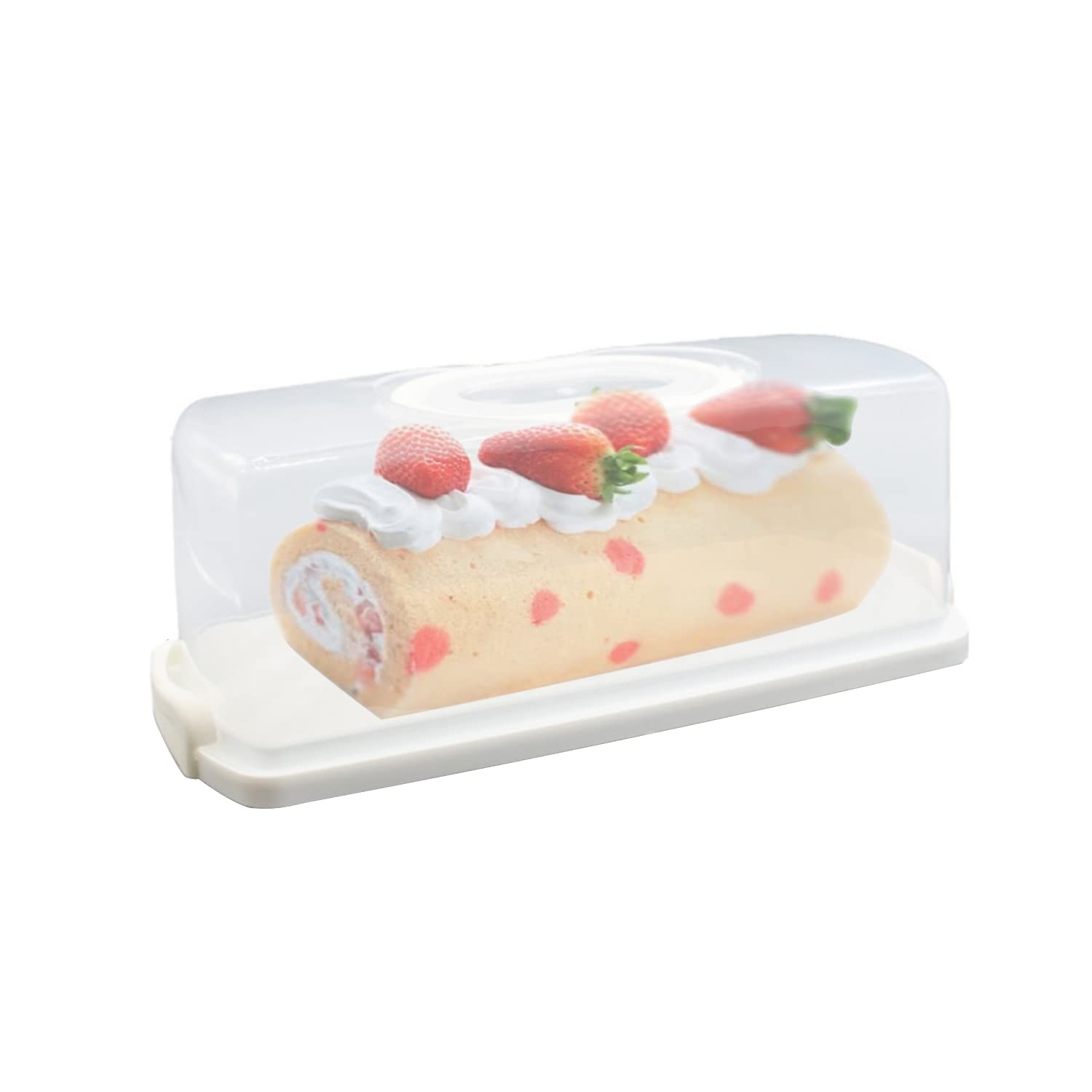 Portable Plastic Rectangular Loaf Bread Box, 13inch Translucent Cake Container Keeper for Buns Rolls Pumpkin Cakes Bagels Pastries Doughnut White