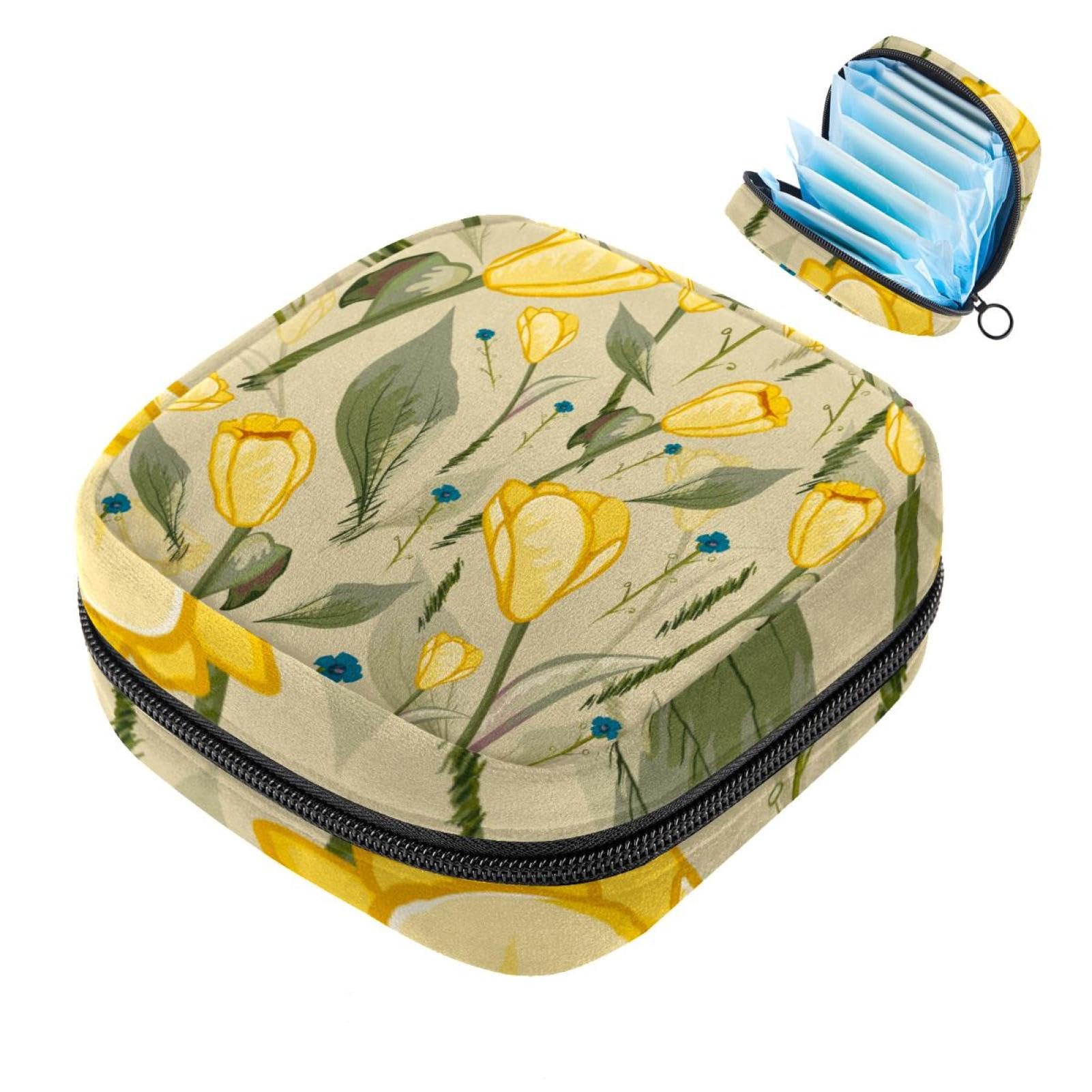 Portable women's binding-up bags menstrual cup bags feminine menstrual insert bag for teenage girls tampons for the first period yellow tulips flowers green leaves multicolored 08