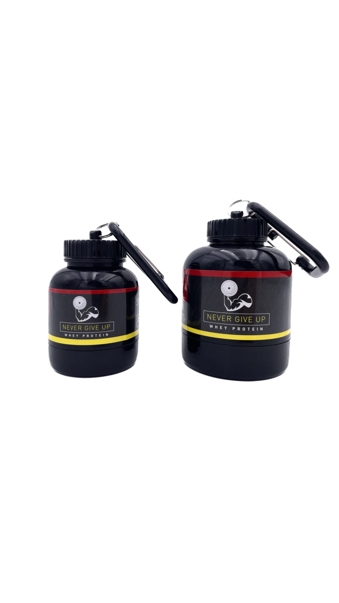 Description: Material: Polypropylene. Dimensions: 7 x 3.5 x 3.5 cm for the small 30-gram container, 10 x 6 cm for the large container. Protein container, 30-gram or 60-gram serving size, packaging: OP bag. Features: 1: Made of high-quality PP, safe, non-toxic, eco-friendly, and durable. 2: Easy to clean, simply dry after washing and reuse. 3: Small, convenient, and easy to carry essential for travel for those who want to take protein powder with them everywhere. 4: The bottom can be unscrewed for easy filling. 5: Suitable for filling all kinds of protein powder or powdered milk easy to use. Package includes: One protein powder container. If you purchase the kit, you will receive two containers: one 30-gram and one 60-gram, and a carabiner for attaching it anywhere. Note: Manual measurements may have slight errors, within a range of 1 cm. The actual size should be based on the physical product. Due to different lighting and shooting conditions, the color of the image may differ from the actual product. Please refer to the actual product.Shipped by courier within 24 hours of purchase - Genuine Shop-Up! product. Made in Italy. Quick and easy, simply unscrew the bottom of the container, pour in your desired portion, screw the bottom back on, and you're done. The container comes with a handy carabiner so you can attach it to your water bottles, backpacks, or your Shop-Up! portable battery-powered shaker. Choose your preferred size: 30 grams, 60 grams, or the kit containing both 30g and 60g. Shop-Up! offers a line of containers for sports and fitness, allowing you to carry protein powder, creatine, and pills in a small, convenient container. "Never Give Up!"Description : Matériau : polypropylène. Dimensions : 7 x 3,5 x 3,5 cm pour le petit 30 grammes, le grand 10 x 6 cm. Récipient pour protéines, portion 30 grammes ou 60 grammes, emballage : sac OP. Caractéristiques : 1 : fabriqué en PP de haute qualité, sûr, non toxique, écologique et durable. 2: Facile à nettoyer, juste sécher après le lavage et la réutilisation. 3: Petit, pratique et facile à transporter, essentiel pour le voyage pour ceux qui veulent emporter partout avec eux les protéines. 4: Le fond peut être dévissé pour un remplissage facile. 5: Convient pour remplir toutes sortes de protéines en poudre ou de lait en poudre, facile à utiliser. Le paquet comprend : un récipient pour protéines en poudre, si vous achetez le kit, vous aurez deux pièces le récipient de 30 grammes et celui de 60 grammes, et mousqueton pour le coller partout. Remarque : la taille de la mesure manuelle peut présenter quelques erreurs, elle est comprise dans une plage de 1 cm, la taille réelle doit être soumise à l'objet réel. En raison des différentes conditions d'éclairage et de prise de vue, la couleur de l'image peut différer du produit réel. Veuillez vous référer au produit réel.Expédition par transporteur dans les 24h suivant l'achat - Produit original Shop-Up ! Fabriqué en Italie. Pratique et rapide, il suffit de dévisser le fond du récipient et de verser la portion que vous voulez dans le récipient, de visser le fond, et le tour est joué. La boîte est livrée avec un mousqueton pratique pour que vous puissiez l'accrocher à vos gourdes, sacs à dos, ou à votre shaker à batterie portable de la ligne Shop-Up !. Choisissez la contenance que vous préférez entre 30 grammes, 60 grammes ou le kit qui comprend 30 g et 60 g. Shop-Up ! Il présente une ligne de conteneurs pour le sport et l'intégration en apportant avec soi les protéines en poudre, créatine, pilules, dans un petit récipient, pratique et pratique, « Never Give Up ! ».Porte-protéines kit de 30 et 60 grammes muscle Never Give Up, récipient et entonnoir portable pour protéines et autres suppléments