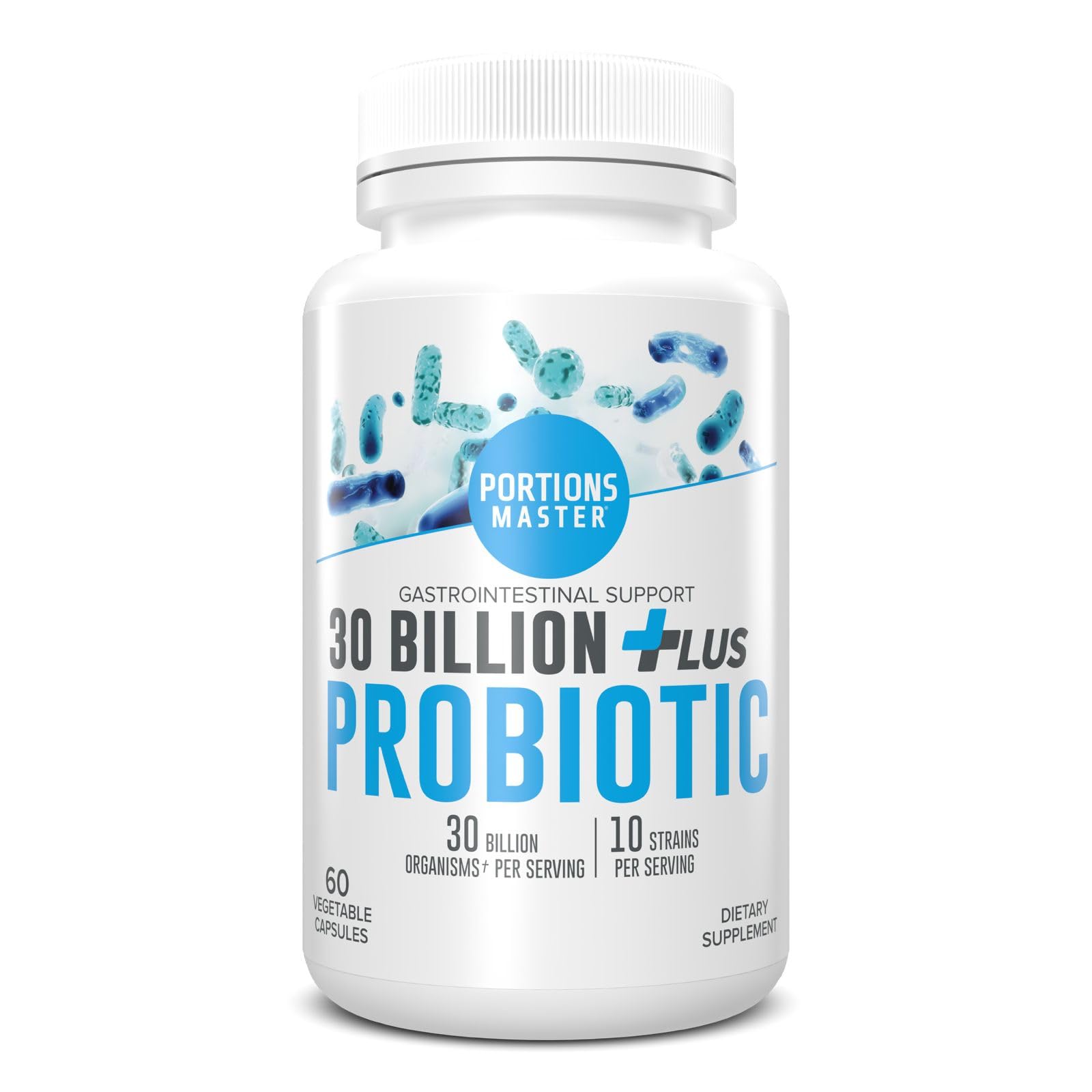Portions Master 30 Billion Probiotic Plus, High Potency Probiotic Supplement with Multiple Strains, Supports Digestive Health, Immune Balance & Gut Flora (60 Vegetarian Capsules)