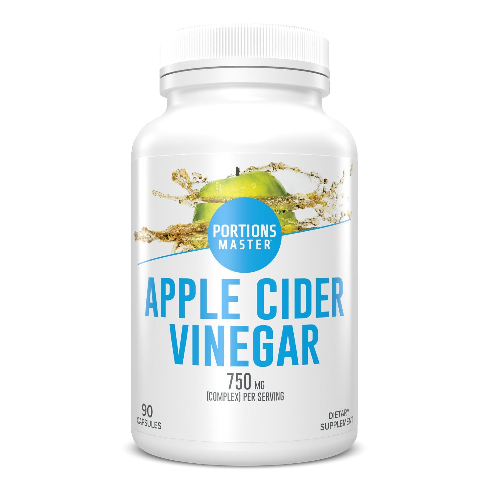Apple Cider Vinegar is derived from the natural fermentation of apple cider. Take apple cider vinegar regularly and help improve your health. Each Portions Master Apple Cider Vinegar bottle contains 90 capsules made with 100 natural apple cider vinegar from the mother. Generous Dosages: 750 mg per serving 90 capsules per bottle.