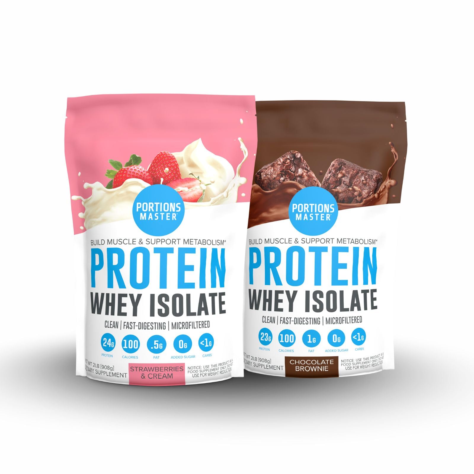 Portions Master CFM Whey Isolate Protein Powder 2-Pack Chocolate Brownie & Strawberries and Cream Flavors